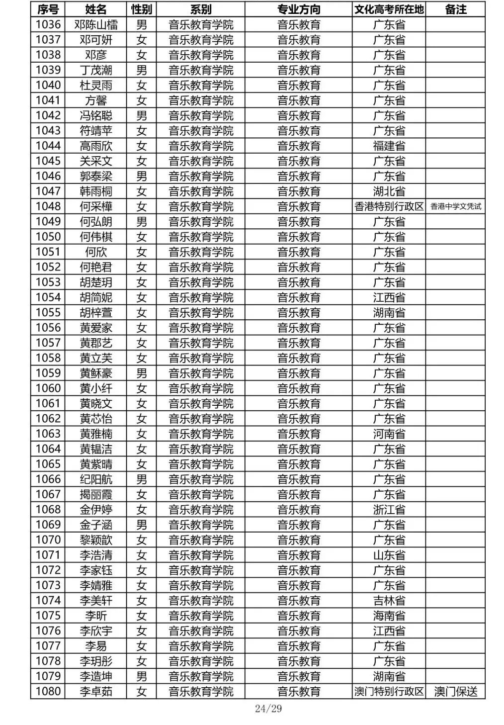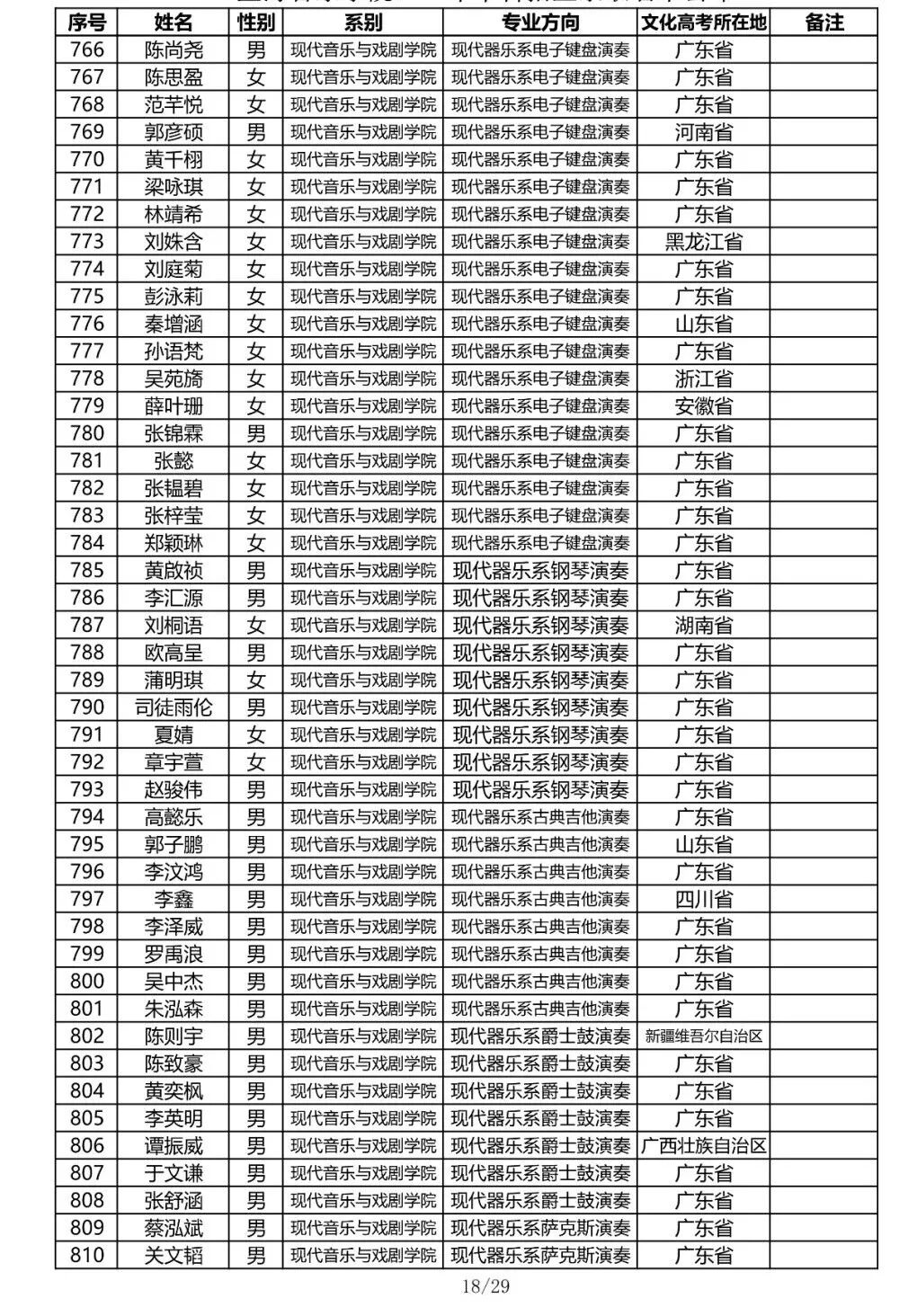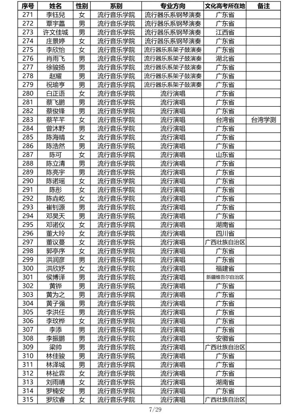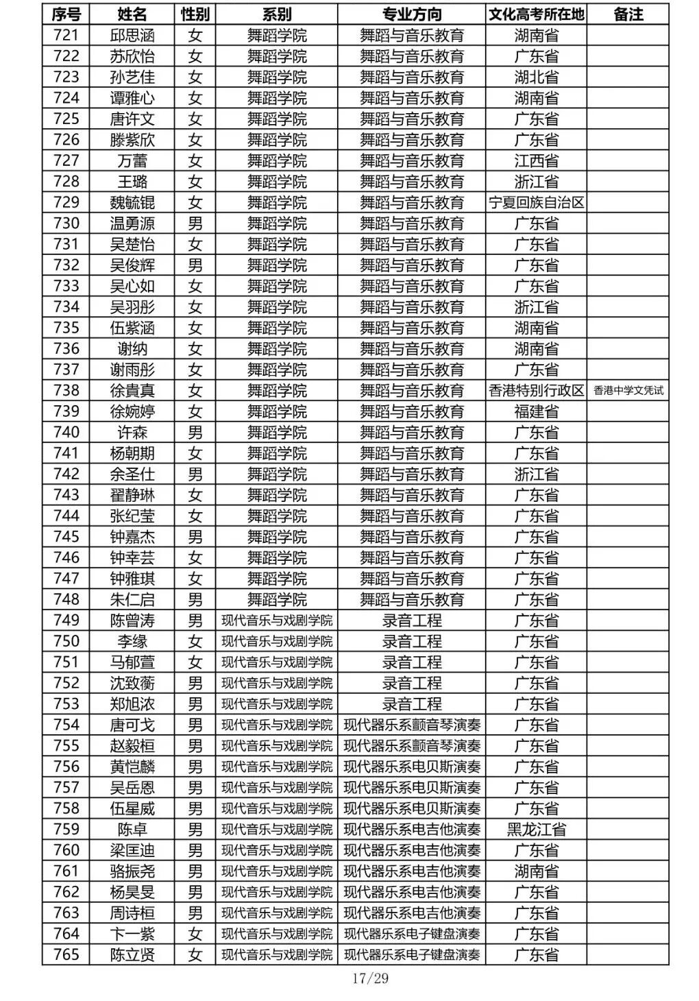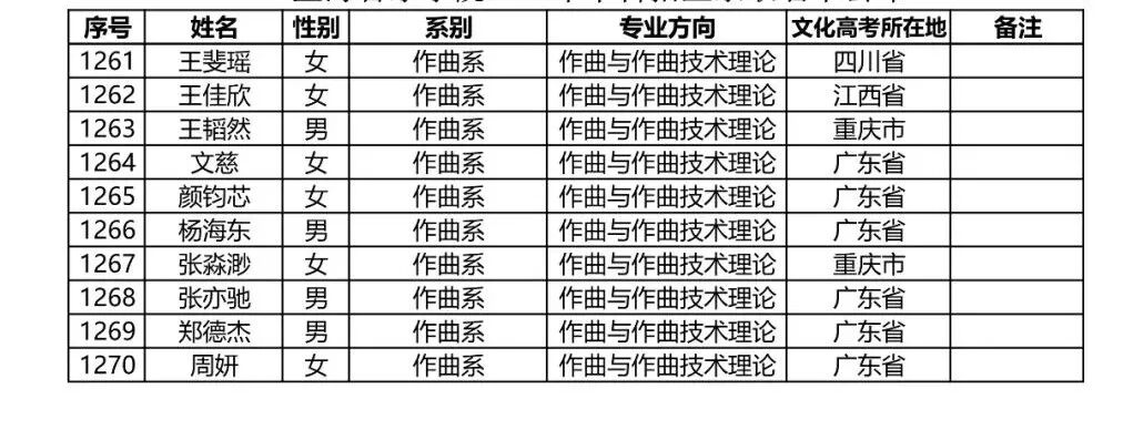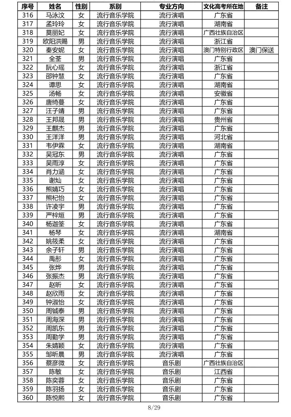 注:因港澳台联合招生录取工作尚未结束,故本名单不包含港澳台联招的录取名单。