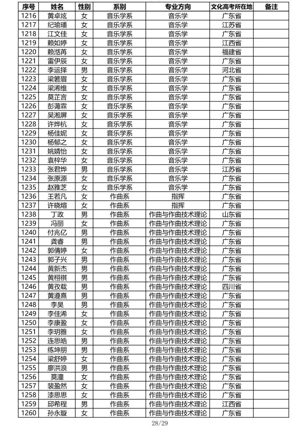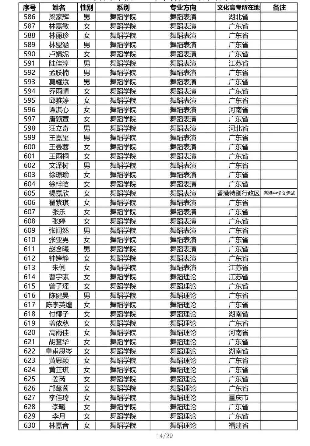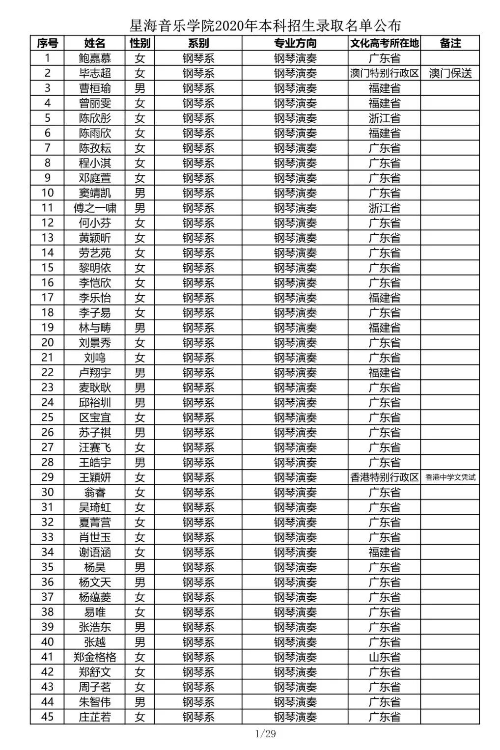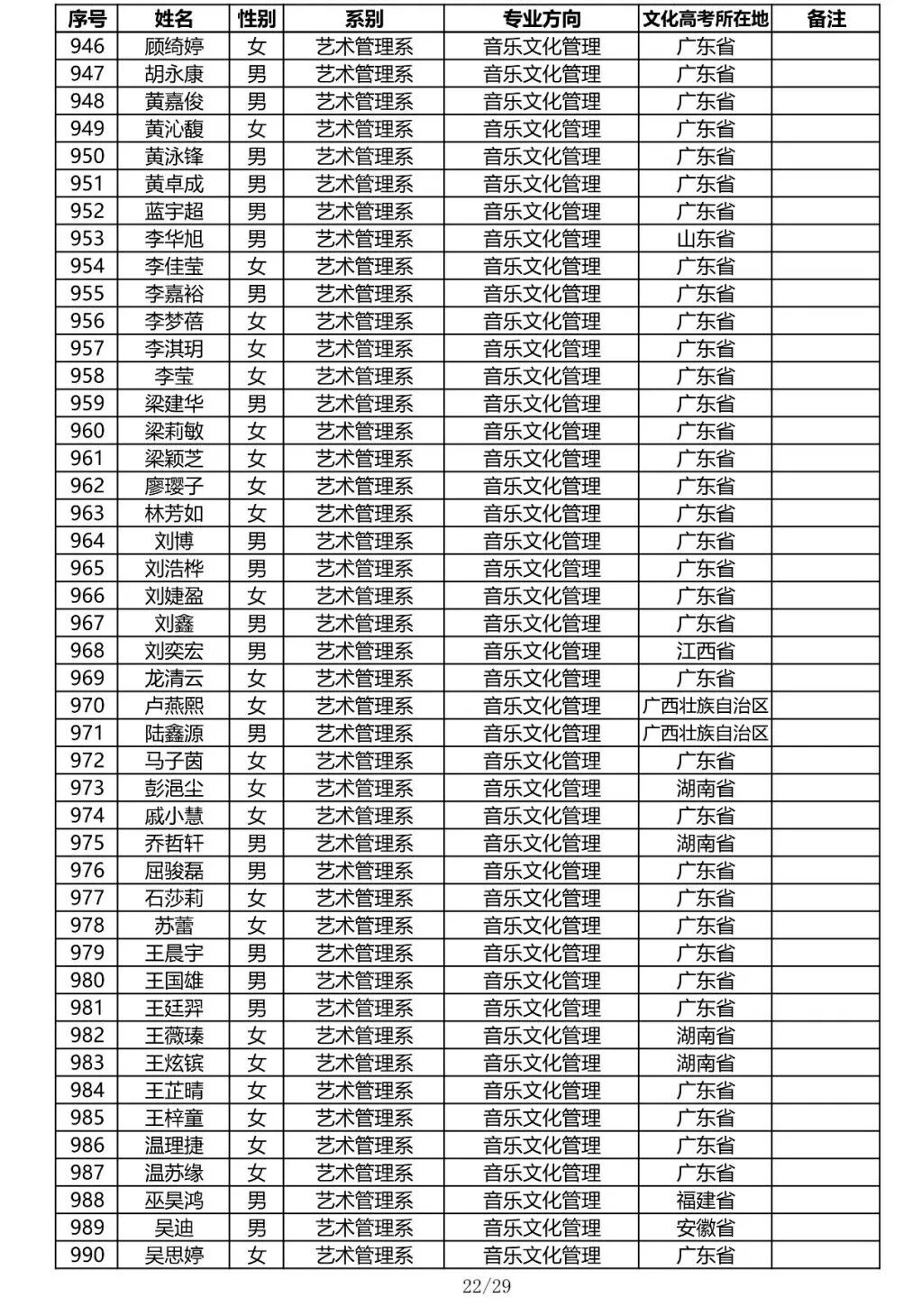注:因港澳台联合招生录取工作尚未结束,故本名单不包含港澳台联招的录取名单。