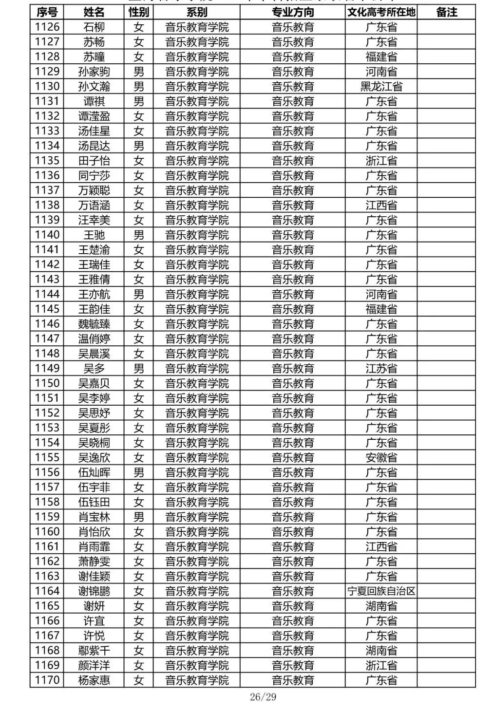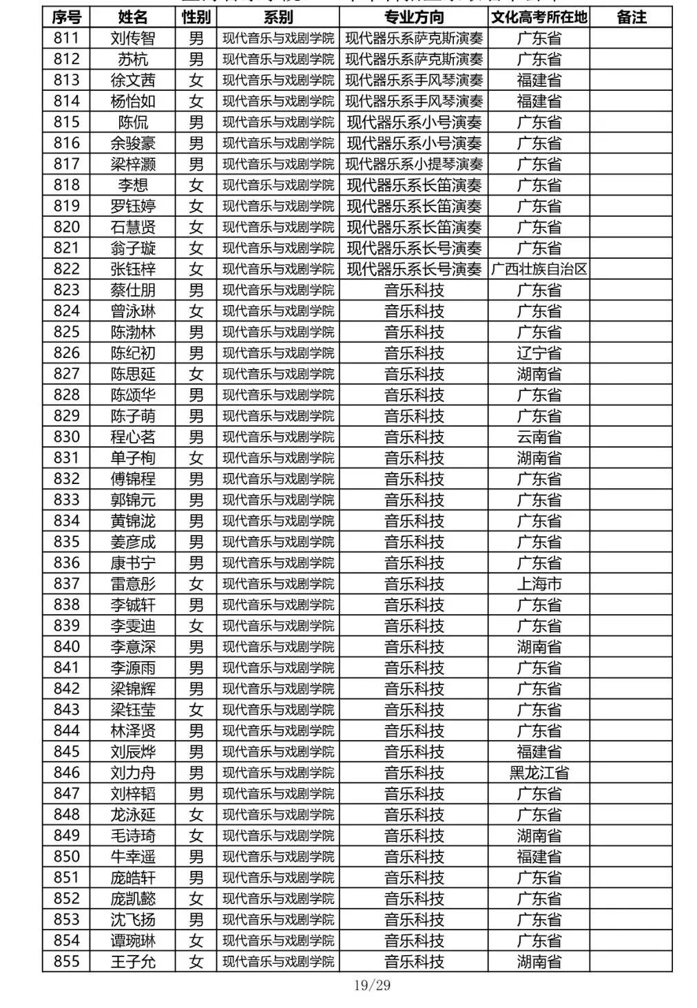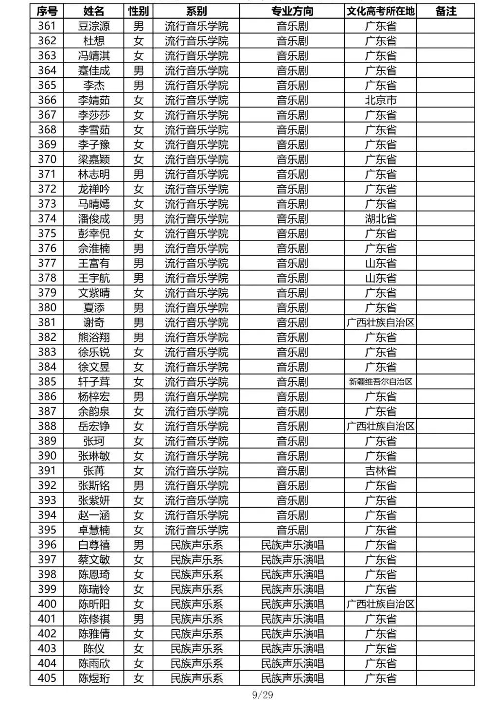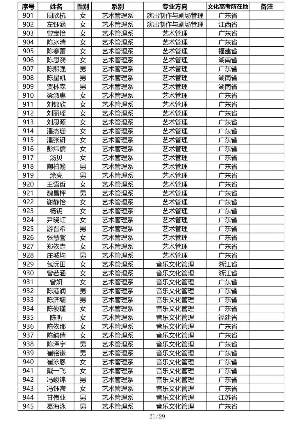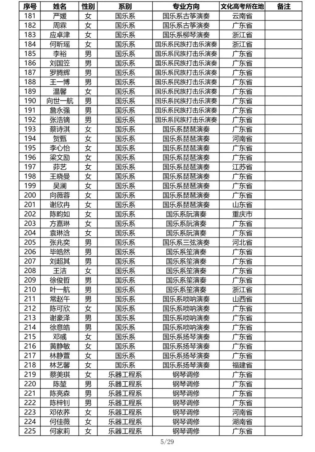 注:因港澳台联合招生录取工作尚未结束,故本名单不包含港澳台联招的录取名单。