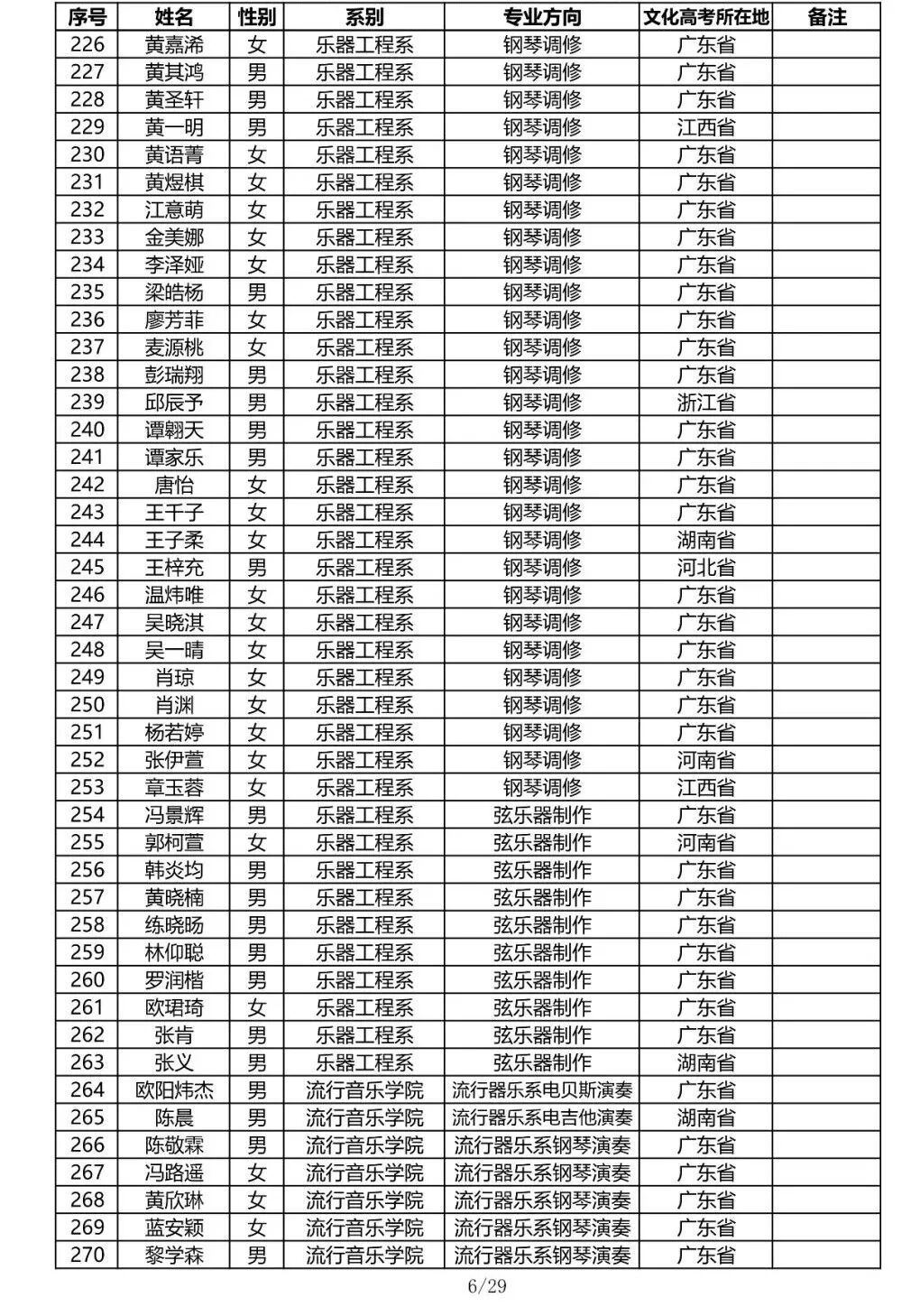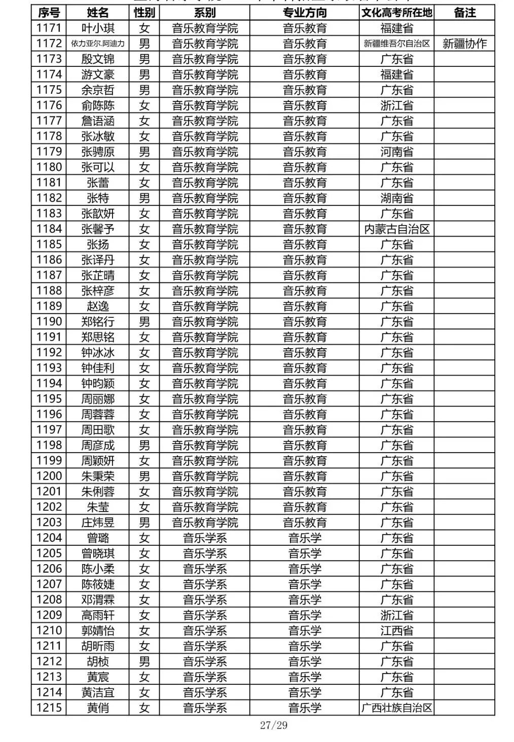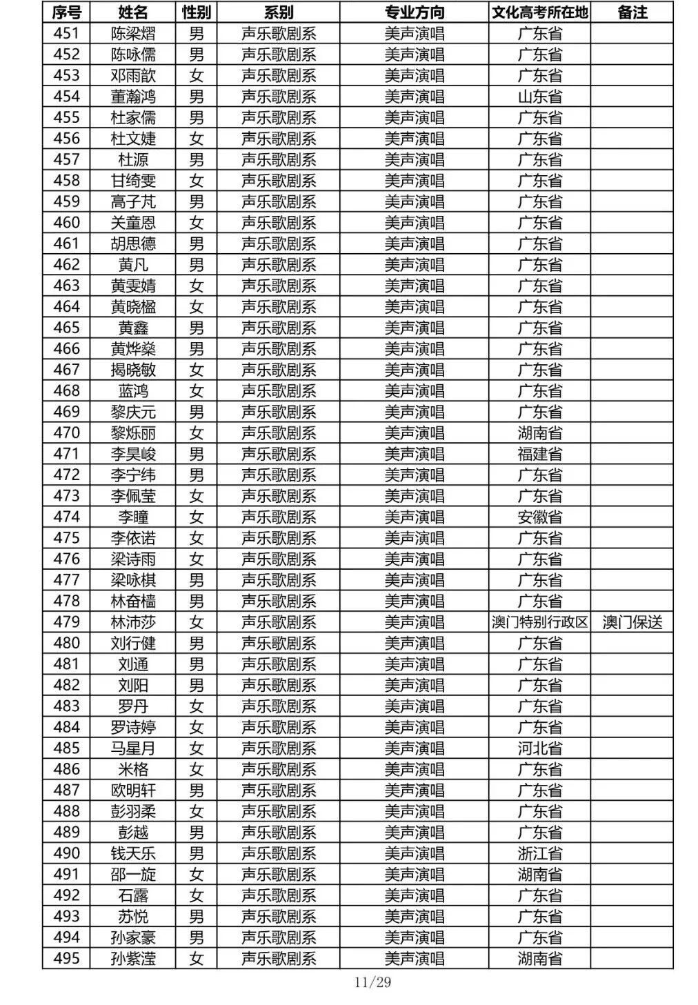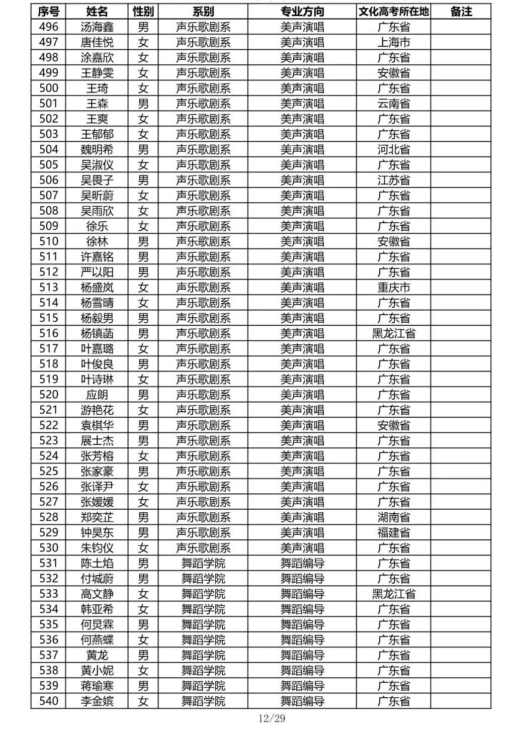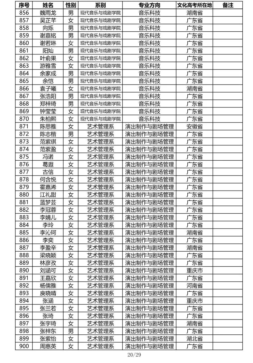注:因港澳台联合招生录取工作尚未结束,故本名单不包含港澳台联招的录取名单。