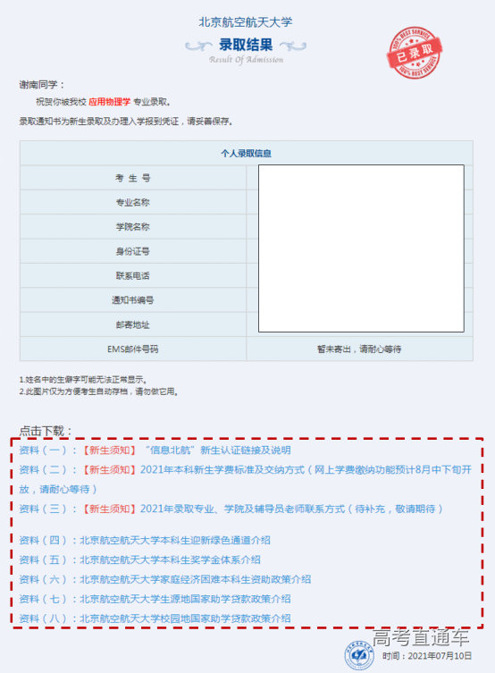 注:因数据处理校对需要一定时间,考生可在我校录取查询系统查询到录取结果的时间可能比在省级招生主管部门信息系统查询到录取结果时间晚2-3天左右,请考生耐心等待。