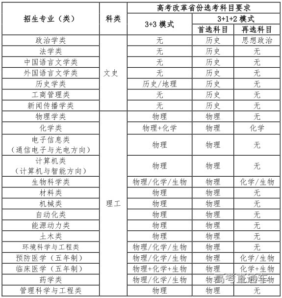 注:高考改革省份选考科目要求中,“物理+化学”表示物理和化学均须选考,“物理/化学/生物”表示物理、化学、生物三门课程中只要选考其中一门即可,其他情况同理。