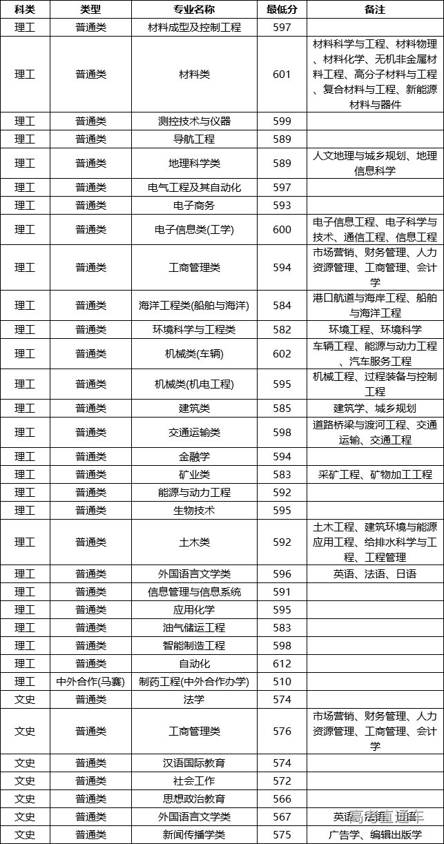 2020年武汉理工大学在黑龙江省分专业录取分数线