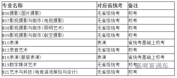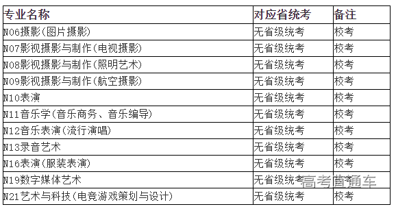 学校艺术类校考专业属于艺术类省级统考涵盖范围内的,按照省有关招生规定执行。考生报考时须具备相应艺术类省级统考合格成绩。为方便考生了解我校艺术类校考专业是否涉及省统考以及涉及哪一类省统考,现将有关信息公布如下: