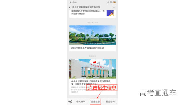 (一)“中山大学新华学院招生办公室”官方微信公众号查询