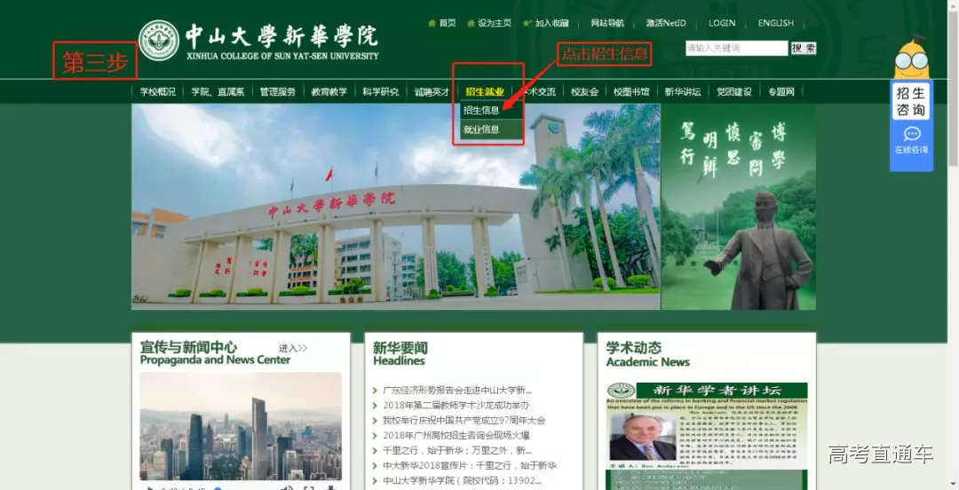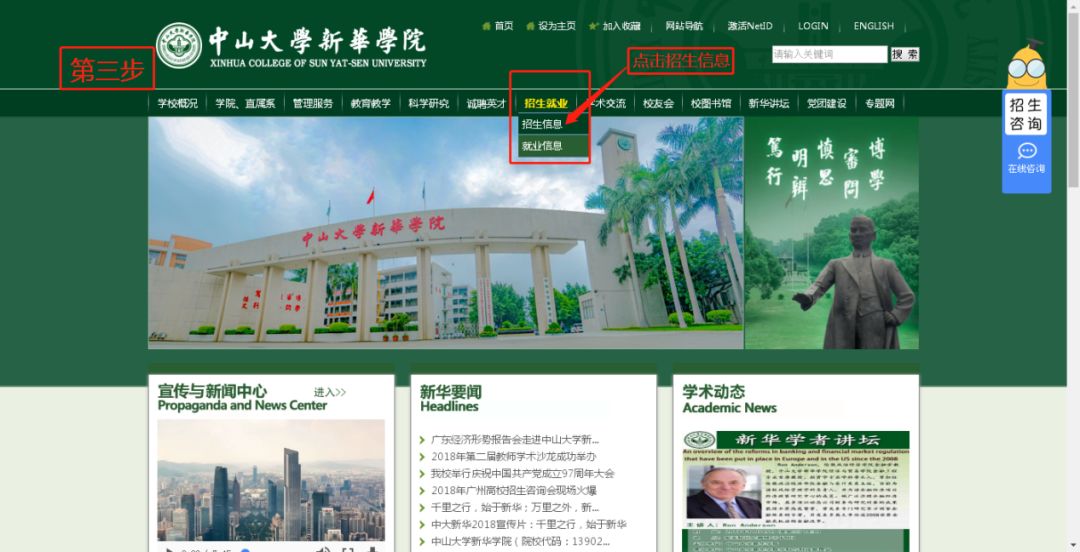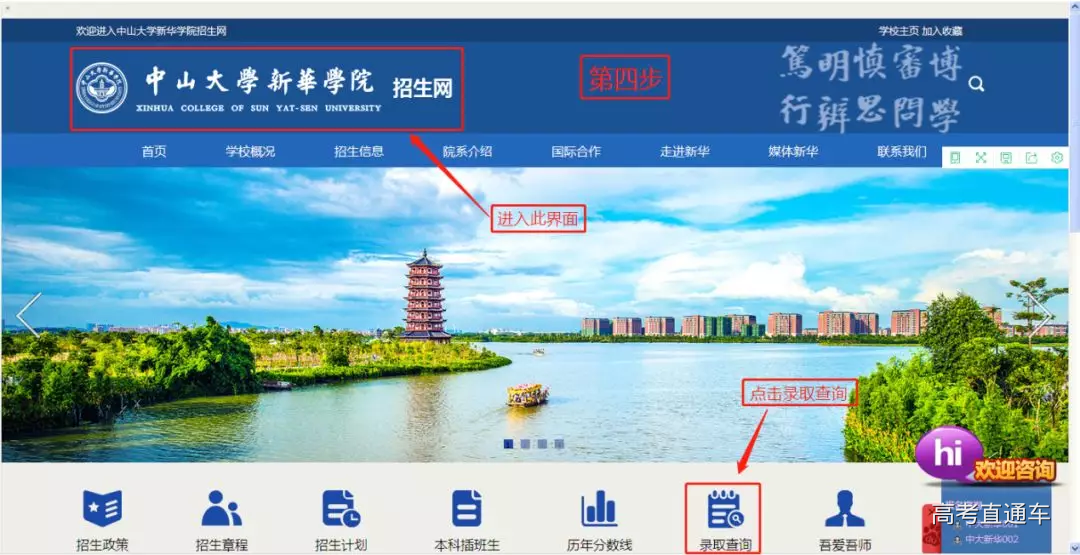 考生可通过网页查询方式登录中山大学新华学院官方网站