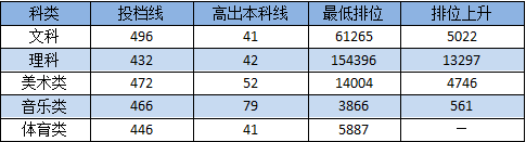 【文科】最低录取分496分,高出省控线41分,最低排位61265,对比2018年挺进5022位;最高分528分,高出省控线73分,最高排位33008。位居广东省独立学院第6名。