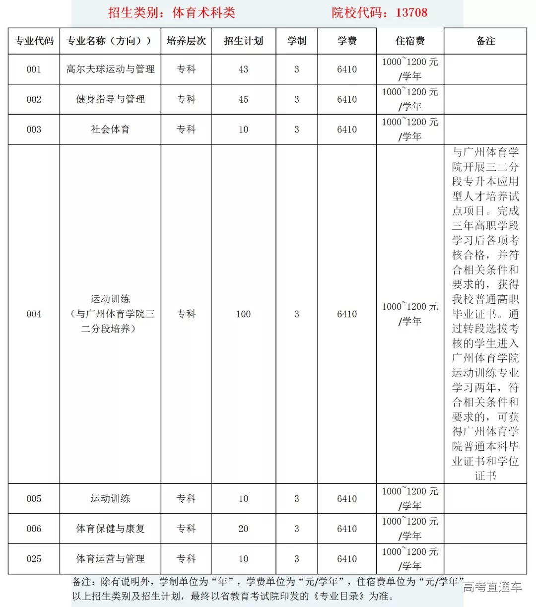 一、招生对象 普通高考文科、理科、体育术科类考生 二、学院简介 广州体育职业技术学院的前身为创办于1973年的广州市体育运动学校和创办于1976年的广州市体工队,1996年更名为广州市伟伦体育运动学校。2004年3月,经国家教育部备案、广东省人民政府批准,升格为广州市政府举办的全国首家省会城市、全日制高等体育职业院校。 学院毗邻广州市天河高校区,在长期的办学过程中形成了“人才强校、金牌荣校、文化兴校”的办学理念,确立了“崇德、善搏、求实、勤学”的校训,明确了“立足广州、面向全国、辐射海内外,打造拔尖运动员孵化哺育基地、优秀体育人才终身教育园区和体育多元文化交流平台”的办学定位,形成了“教体融合、学训一体”的办学特色。 学院先后培养了杨维、张洁雯、杨景辉、杨伊琳、雷声、张雁全、陈艾森、刘诗雯等8名奥运冠军,谢杏芳、樊振东、黄光源等30余名世界冠军,夺取世界冠军119项/次。 三、专业介绍 本专业培养适应体育产业转型升级和体育培训行业发展的需要,面向广东省各级运动队、体育俱乐部、体育培训公司、体育行业协会、小学、幼儿园等企业事业单位,培养德智体美全面发展,掌握运动训练专业基础理论知识和专业技能,具有专业技术教学与训练及赛事与场地管理能力、良好的职业道德和创业精神,能从事运动训练指导、少儿体育教学与训练、赛事运营与场地管理工作的高素质技术技能型人才。 面向足球改革发展战略,培养掌握运动训练专业基础理论知识和专业技能,具有足球技、战术教学与训练的能力、良好的职业道德和创业精神,能从事足球运动训练指导、赛事组织与策划以及足球相关产业经营的复合型技术技能人才。 面向广东省体育行业训练、全民健身及青少年锻炼第一线,培养掌握体能训练基础知识和相关专业技能,具备从事体能测试与评价、运动功能测试与评价、体能训练设计与实施运动损伤防御等相关工作岗位的专业技能、拥有良好的职业道德和创业精神,能从事竞技体育体能训练教练、全民健身体能锻练和青少年体能锻炼指导工作岗位,理论与实践并重的高素质技术技能人才。 社会体育专业(健美健身方向) 培养适应全民健身战略和体育产业转型升级需要,掌握社会体育基本理论与技术、技能,具有良好职业素养和职业道德,主要面向健身行业和传统体育领域,从事全民健身指导、俱乐部健身健美指导、武术健身指导、群众体育活动组织与策划及经营管理的高素质技术技能型人才。 培养适应体育产业转型升级和社会体育发展及全民健身需要,掌握社会体育和体育艺术基本理论、技术、技能,面向健身俱乐部、文体培训机构、少年宫、演艺机构、企事业单位等,从事体育艺术项目教学训练指导、团体健身课程教练、瑜伽教练、文体表演编导的高素质技术技能型人才。 面向健身休闲行业,培养具有良好的敬业精神和职业素质,掌握健身原理与方法、健身管理基本理论与知识,具备健身指导和健身机构运营管理能力,能从事私人教练、团操教练、会籍销售、健身咨询指导、运营管理以及其他相关工作的高素质技能型人才。 培养具有诚信自律的高尔夫运动精神,熟悉高尔夫文化与礼仪,系统掌握高尔夫球运动技术与产业服务管理技能,能胜任高尔夫球技术指导、球会运营、球具维护、赛事运营、专营店经营等岗位工作的德能兼备、高素质技术技能人才。 本专业面向珠三角地区体育服务行业中的体育场馆、体育俱乐部、体育会所等职业领域,培养适应体育产业转型升级和企业技术创新需要,即掌握体育场地设施行业技术服务、市场开发、基层管理工作岗位必备的知识,又具备体育专项技能,拥有从事服务行业综合素质,能够做体育活动组织与管理、体育场地器材维护和管理、体育场地经营与管理等工作的高素质技术技能人才。 培养适应产业转型升级和珠三角经济区域(体育)工商企业营销业务第一线需要,具有良好职业素养和诚实守信的职业道德,掌握市场营销基本理论与技能,具备企业市场调研、产品推销、销售管理、市场推广策划与客户服务等岗位工作能力,面向珠三角经济区域工商企业单位,从事电子商务、营销策划、销售管理等岗位需要的发展型、复合型与创新型的技术技能人才。 本专业面向珠三角地区酒店、旅游等行业,打破传统酒店管理专业课程体系,融合学院体育特色,培养既有酒店管理理念又具备体育技能,具备高星级酒店、度假村、康乐、旅游企业服务、营销、管理等能力的高素质复合型技术技能人才。 培养思想政治坚定、德技并修、全面发展,具有一定科学文化水平、良好的职业道德和工匠精神、掌握运动保健按摩、中医传统疗法、康复理疗、运动疗法、健身指导等专业技术技能,具备认知能力、合作能力、创新能力、职业能力等支撑终身发展、适应时代要求的关键能力,具备较强的就业创业能力,面向广州及周边区域各级运动队、体育俱乐部、社会保健部门、各类医疗康复机构、体育健身及运动休闲会所等领域,能够从事保健、康复理疗及健身指导等工作的高素质劳动者和技术技能人才。 培养思想政治坚定、德技并修、全面发展,具有一定的科学文化水平、良好的职业道德和工匠精神、掌握运动疗法、作业疗法、保健按摩、中医传统疗法(针灸、