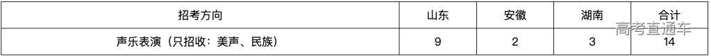 | 音乐学 | 考生高考文化成绩(含政策加分,下同)须达到所在省艺术类本科合格线,音乐学专业统考成绩不低于240分(300分制),在进档考生中,按分数优先原则根据专业统考成绩排序录取。 | 各招考方向不可兼报 |