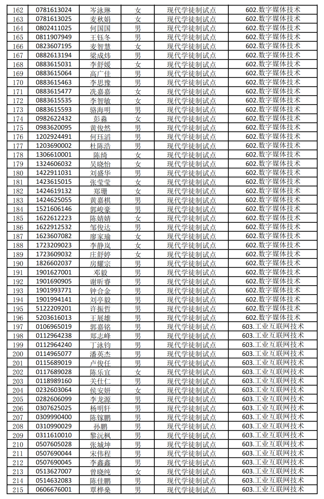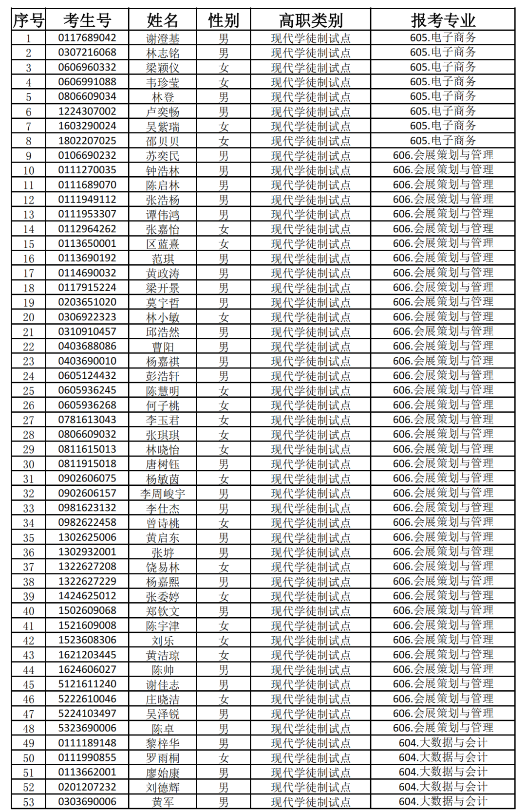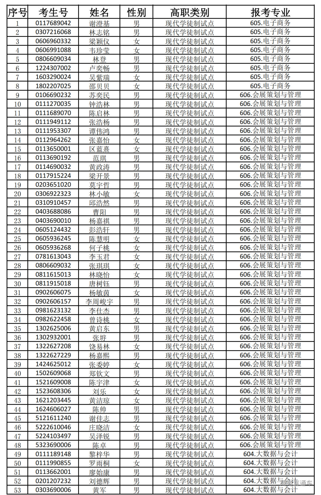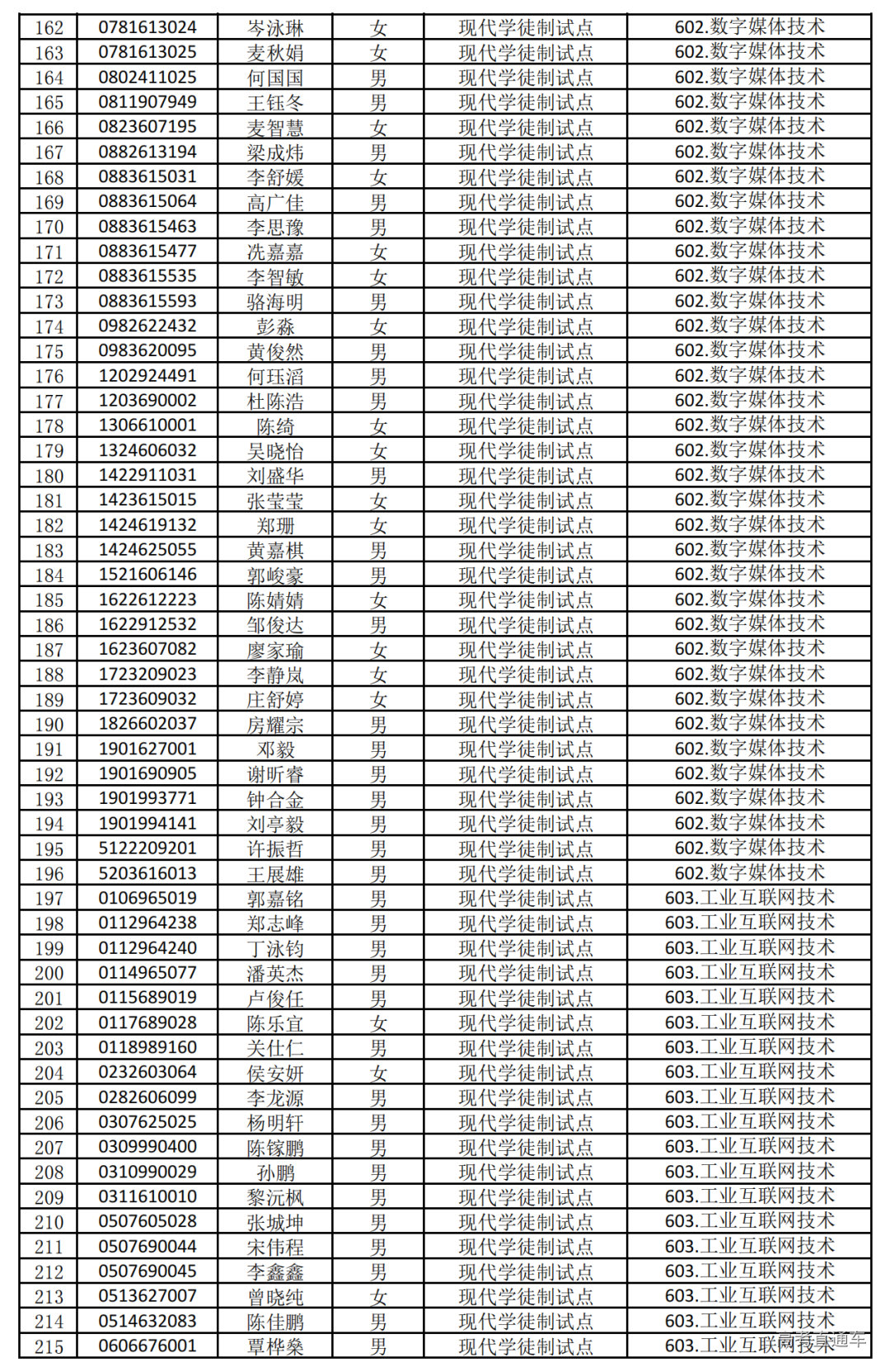 2025年自主招生(现代学徒制)报名审核通过名单如下: