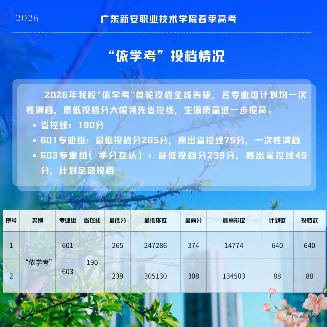 喜讯速递!广东新安职业技术学院2026年春季高考(依学考、3+证书)首轮投档工作圆满完成,本次招生生源质量稳步攀升,两大主赛道均实现一次性满档,报考热度持续走高,再次印证学校办学实力与专业口碑!