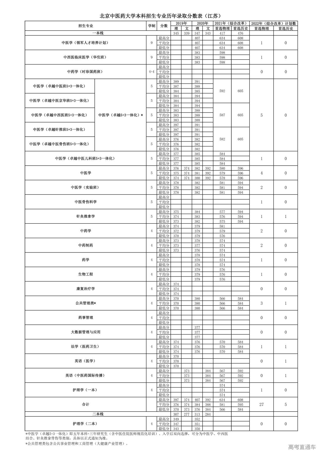 北京中医药大学2022年江苏招生计划