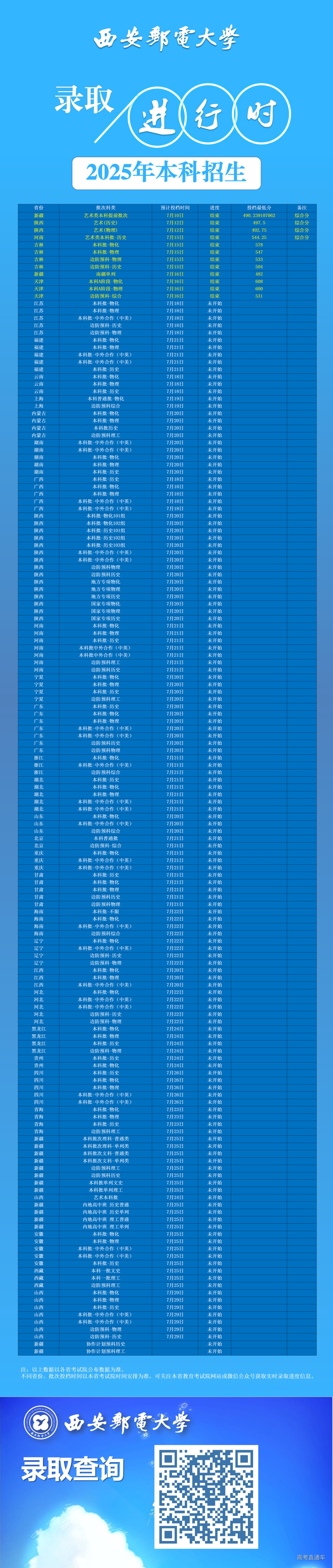 西安邮电大学2025年本科招生录取动态(截止7月17日18:00)