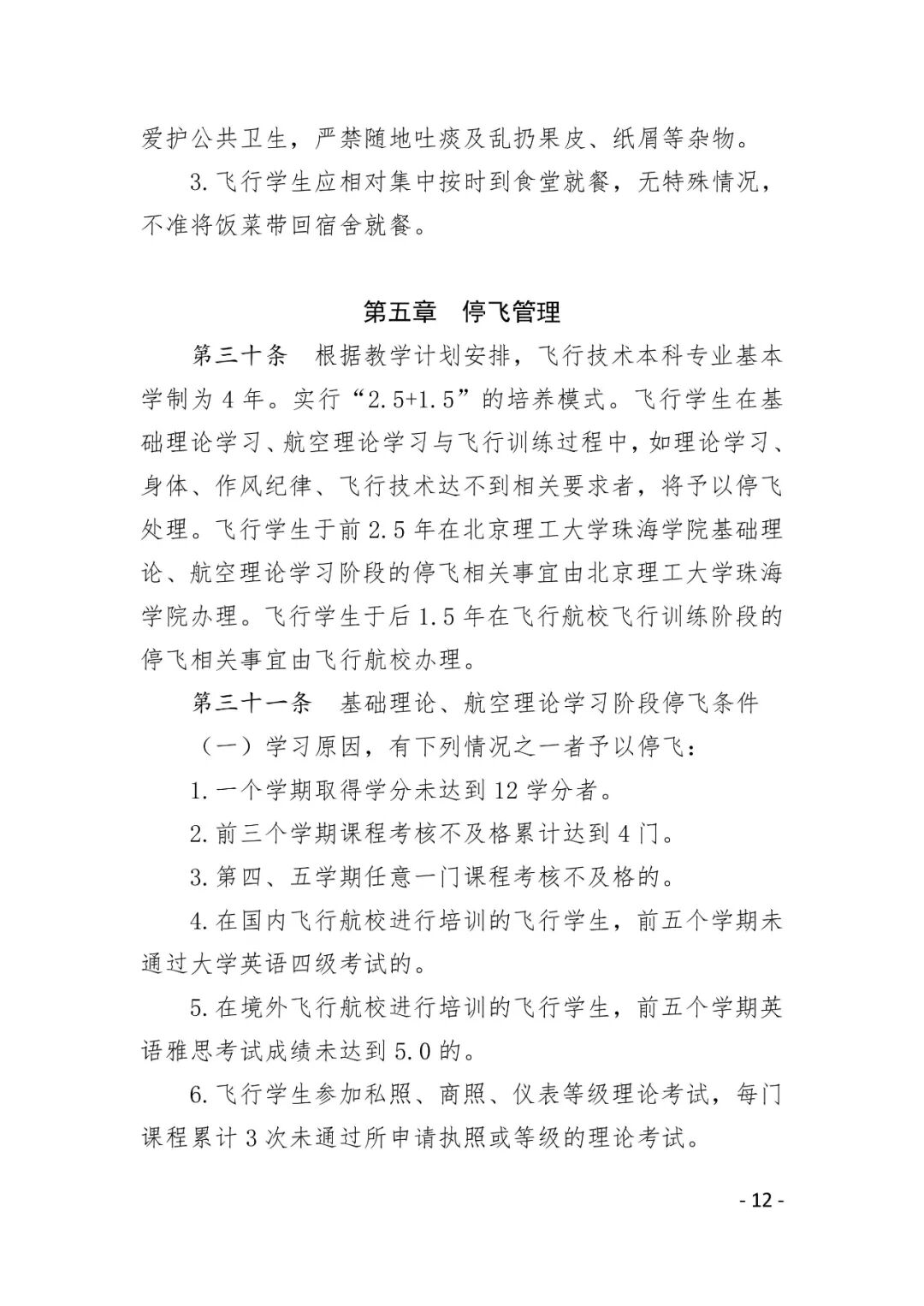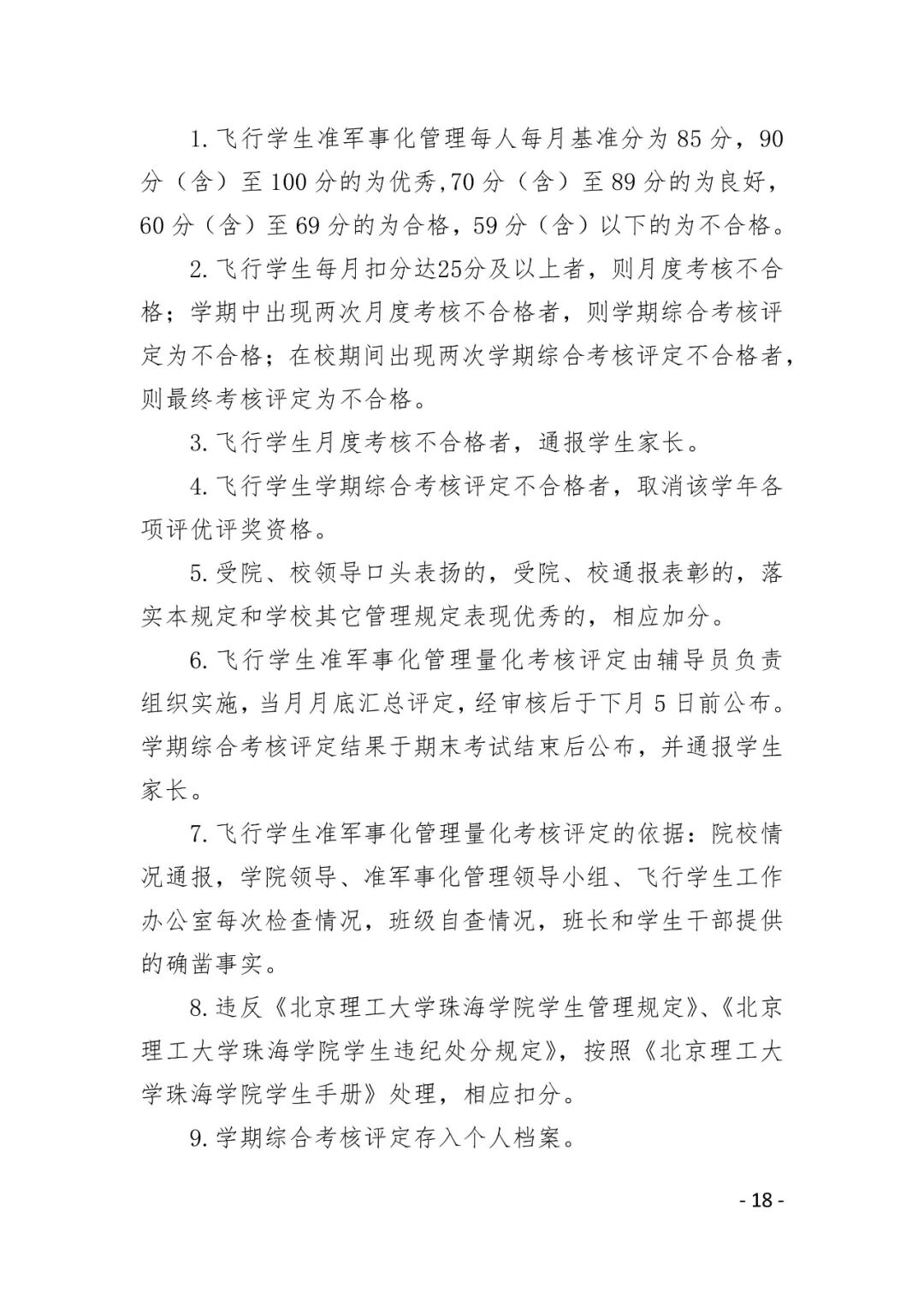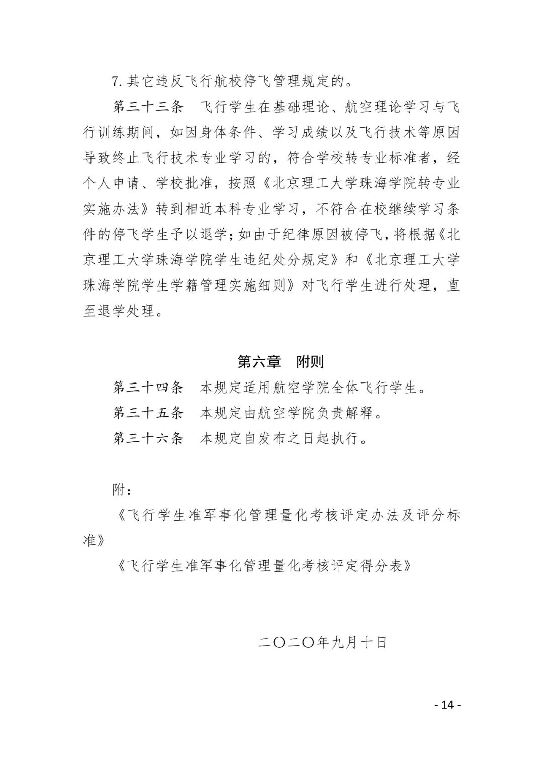 附件3.北京理工大学珠海学院航空学院飞行学生准军事化管理规定