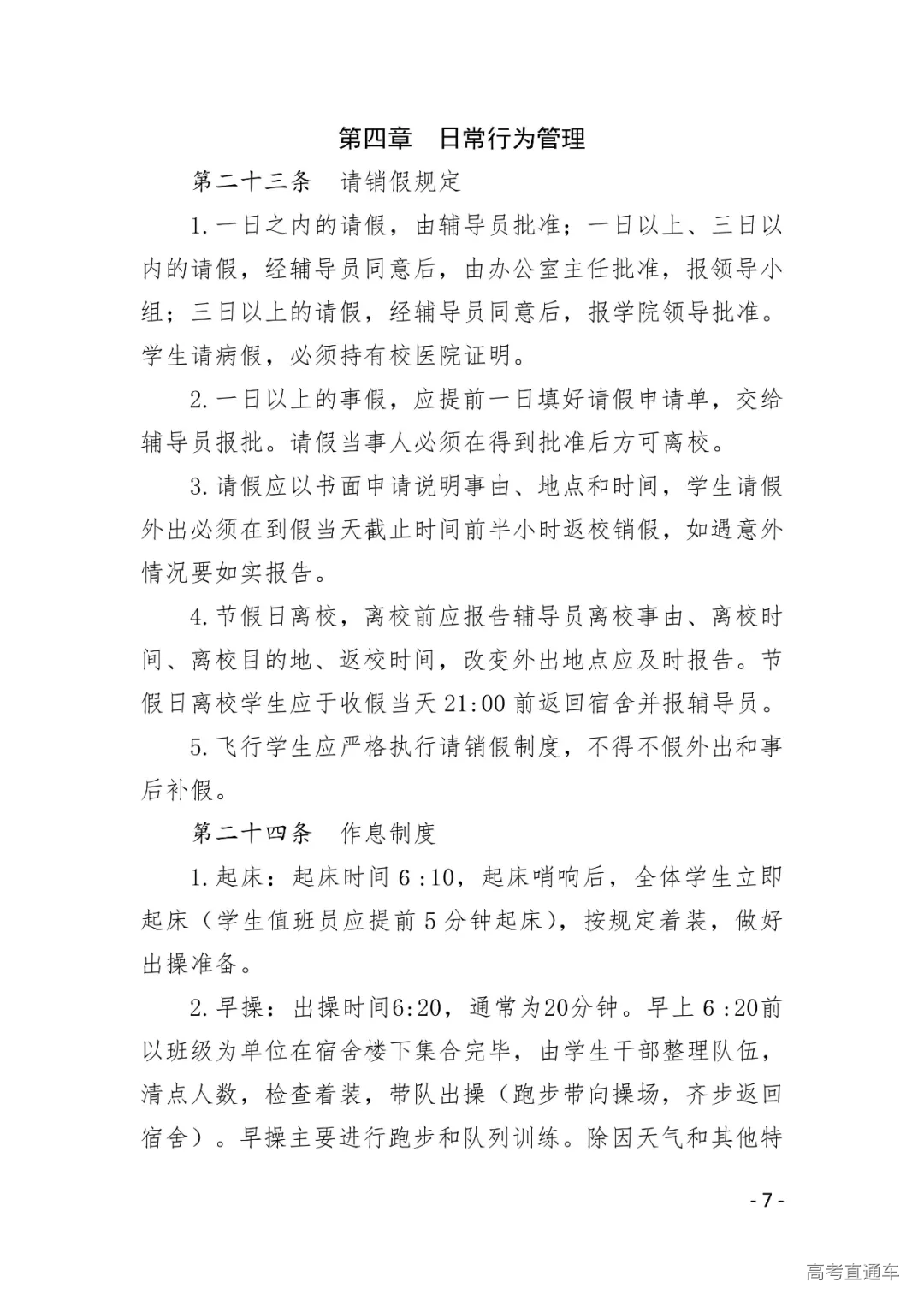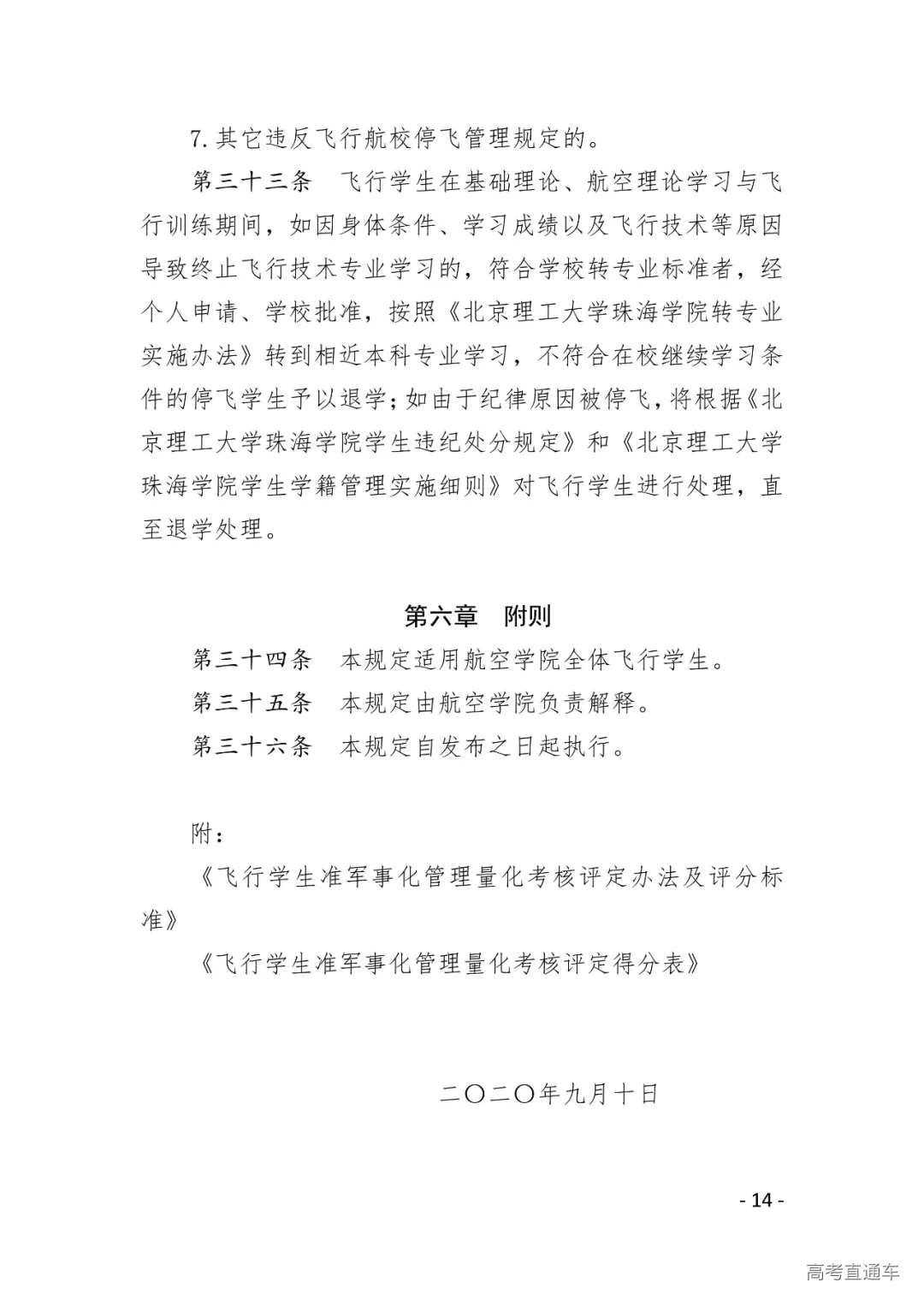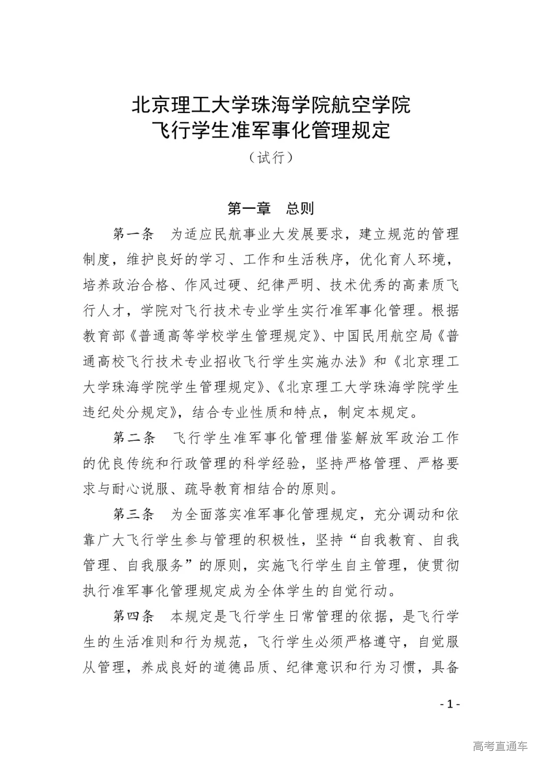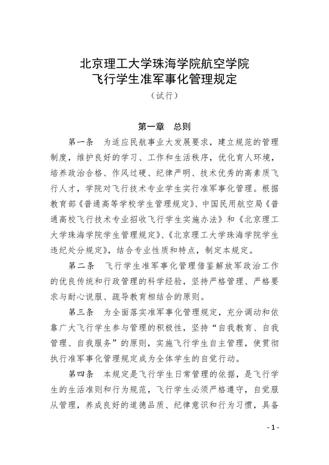 附件3.北京理工大学珠海学院航空学院飞行学生准军事化管理规定