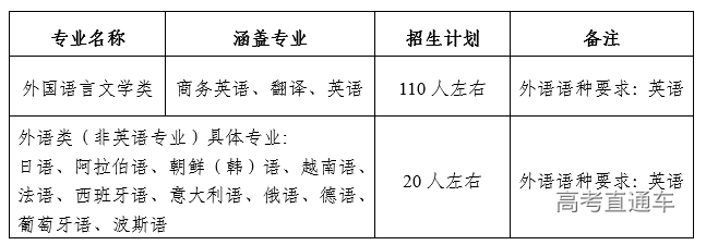 我校2020年外语类保送生招生计划为130人左右(根据生源质量、数量和测试成绩等情况予以调整),招生专业和招生计划如下: