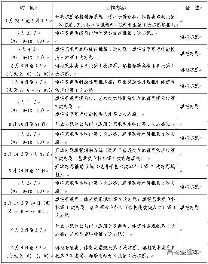 2020年高考志愿填报时间安排