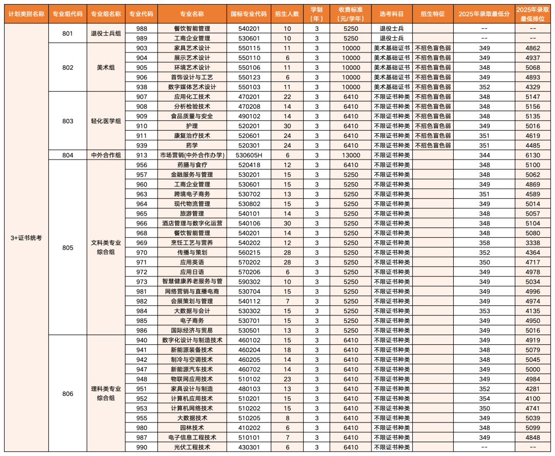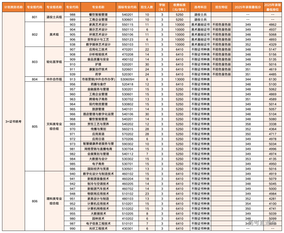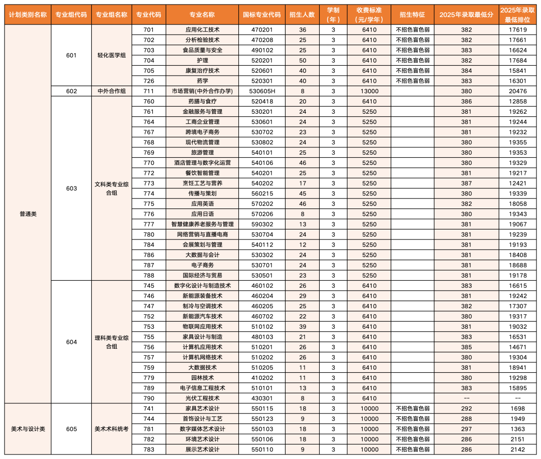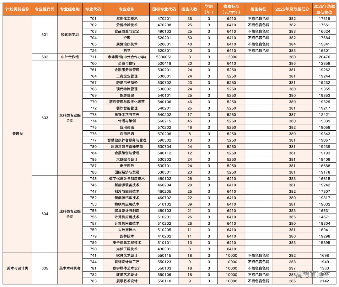 1.各招生专业、专业代码、计划数、特征要求及备注以广东省招生委员会公布的专业目录为准。