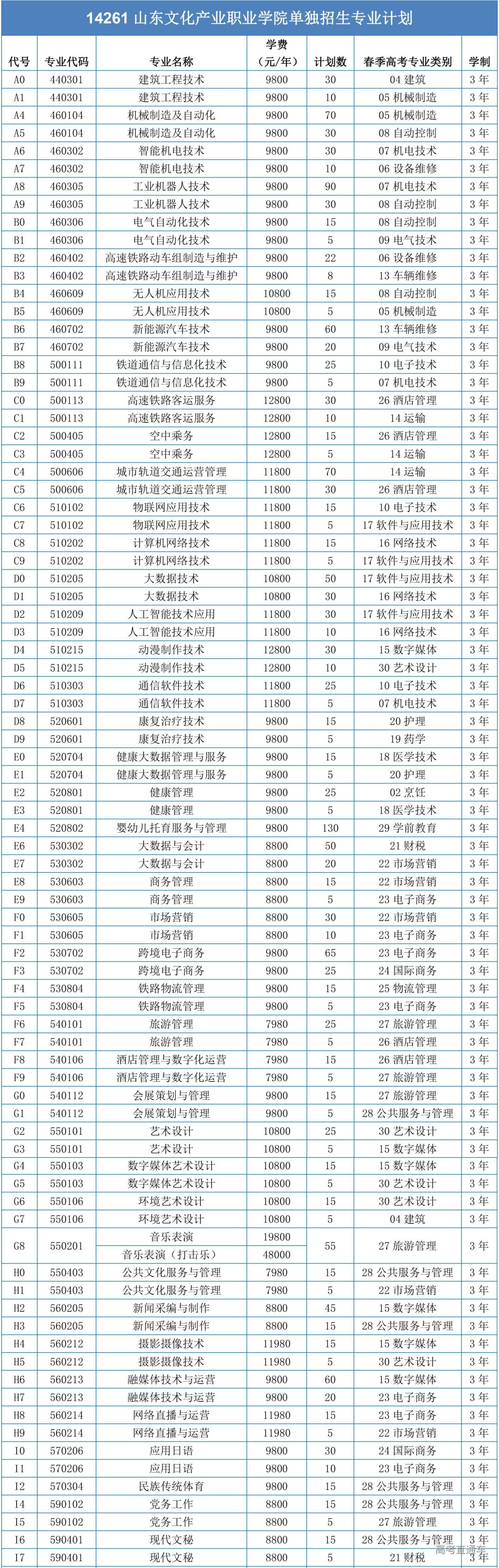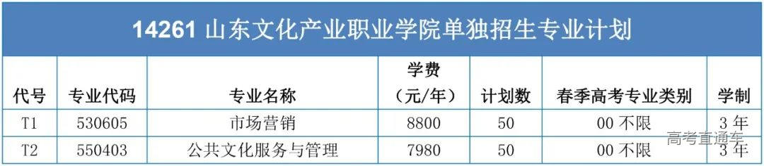 2023年单独招生专业普通类