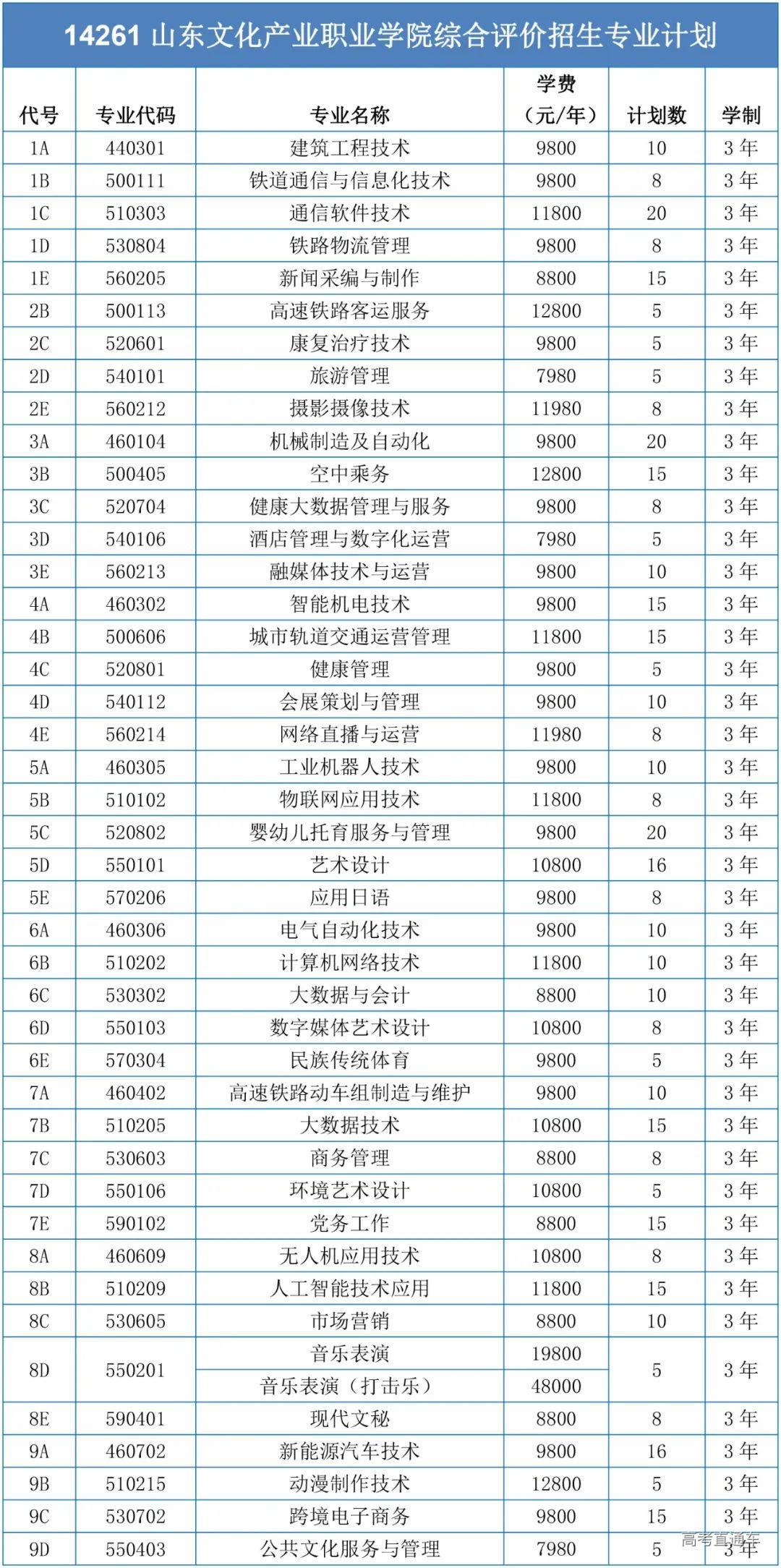 2023年综合评价招生专业