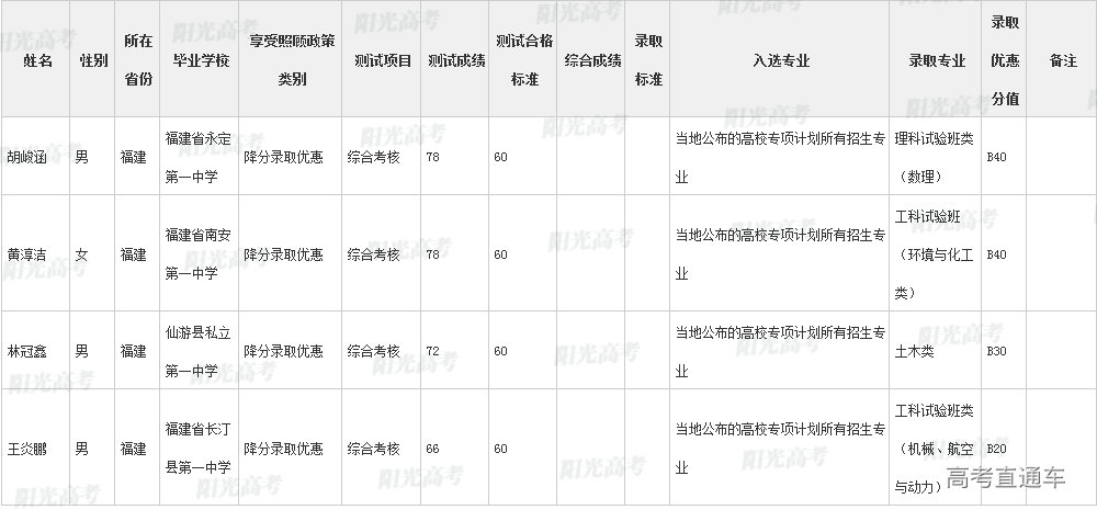 ①入选考生达到一本批次高校模拟投档线即予以录取的,以“B”标注;也可是"B"+"数字",表示高校模拟投档线下优惠多少分录取,如B20表示高校模拟投档线下优惠20分录取;