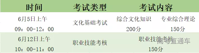实行“文化基础(含综合文化知识和专业综合理论)+职业技能”的考核方式,入学测试总分满分值为500分,其中综合文化考试满分值为200分,专业综合理论考试满分值为150分,职业技能考核满分值为150分。