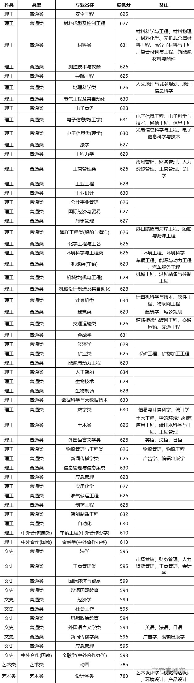 2020年武汉理工大学在安徽省分专业录取分数线
