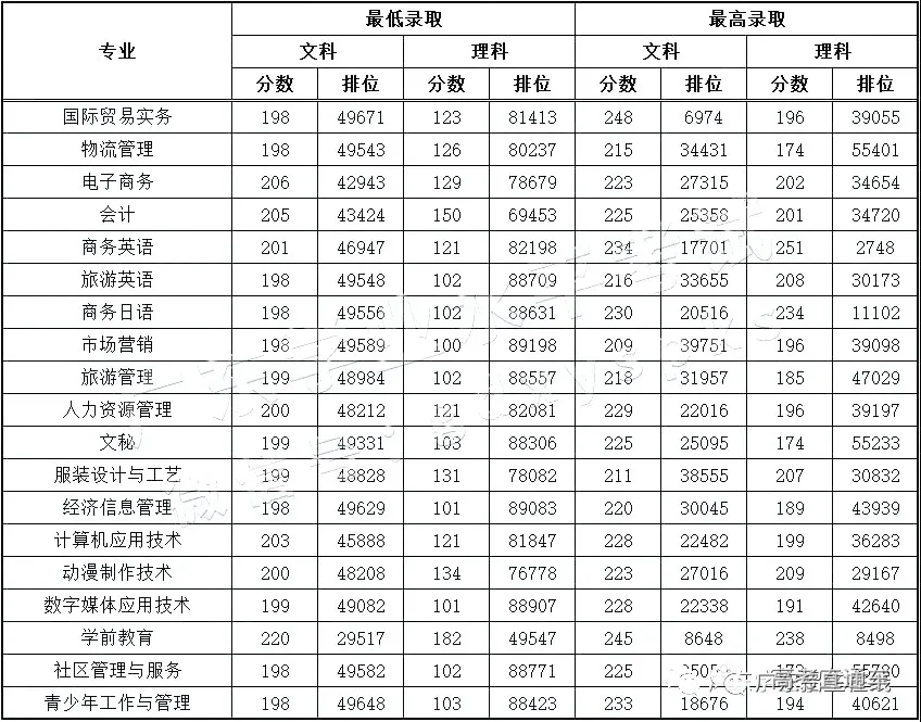 广东女子职业技术学院2019年学考录取分专业录取分数线