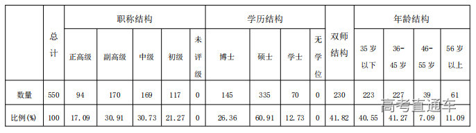 学校现有专任教师 550 人、外聘教师 298 人,折合教师总数为 699 人,生师比为 17.96:1。