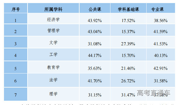 1.不断强化课程体系设计,全面优化课程整体结构。学校基于 OBE 教育理念,深化公共基础、通识教育、创新创业教育、学科基础教育、专业教育和实践教学六大平台课程体系建设。各专业结合各自特点在专业学术、创新拓展、就业综合等类别进行课程个性化设置和方向(模块)管理,适应社会需求,服务地方、就业发展以及个性化培养的需要,持续优化公共课、学科基础课和专业课结构比例(见表 4)。