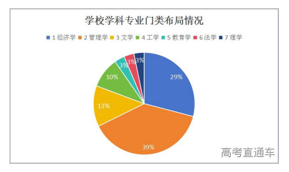 学校现有本科专业 31 个,涵盖经济学、管理学、法学、文学、理学、 工学、教育学 7 个学科门类,另有 7 个招收专升本学生的专业(见表 1)。 各学科具体专业设置情况如下:经济学专业 9 个占 29%、管理学专业 12 个 占 39%、文学专业 4 个占 13%、工学专业 3 个占 10%、教育学专业 1 个占 3%、 法学专业 1 个占 3%、理学专业 1 个占 3%。