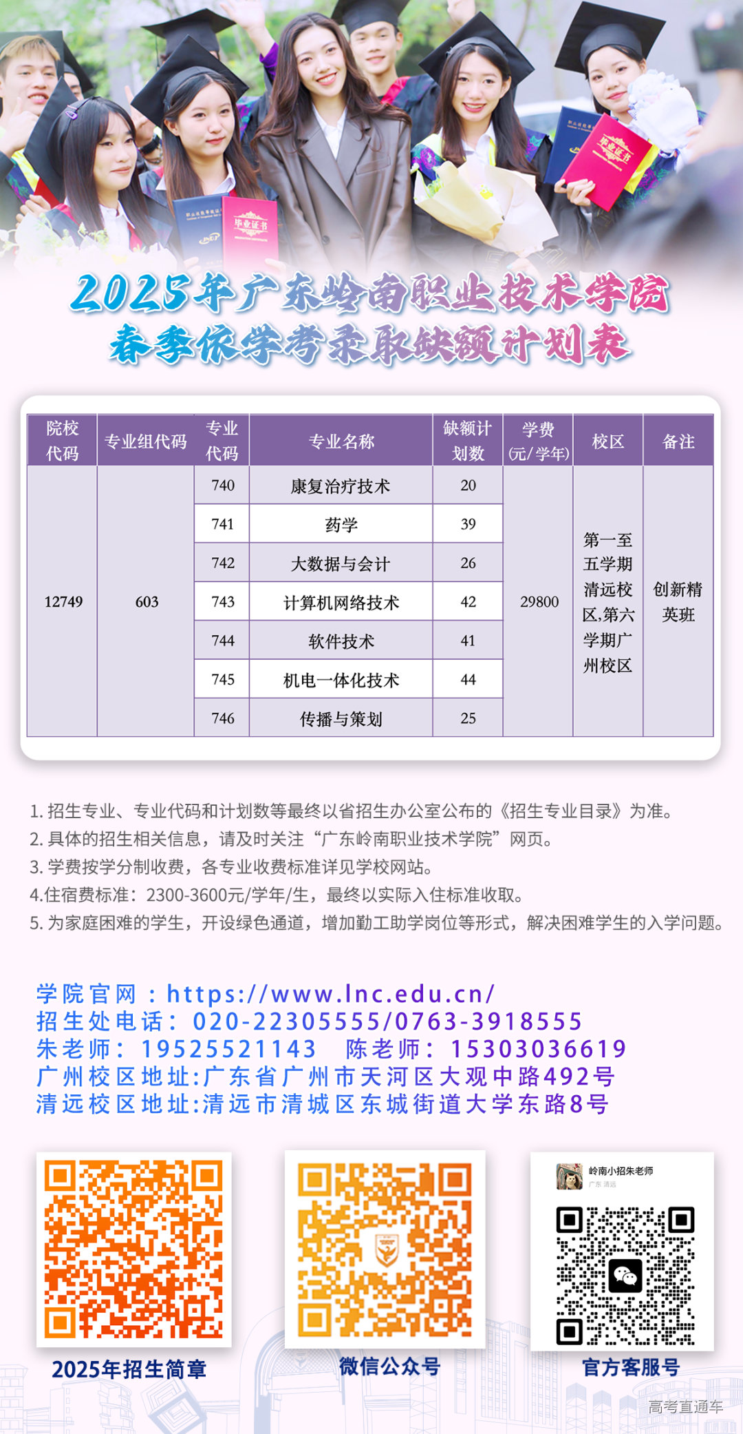 广东岭南职业技术学院2025年春季高考补录计划公布