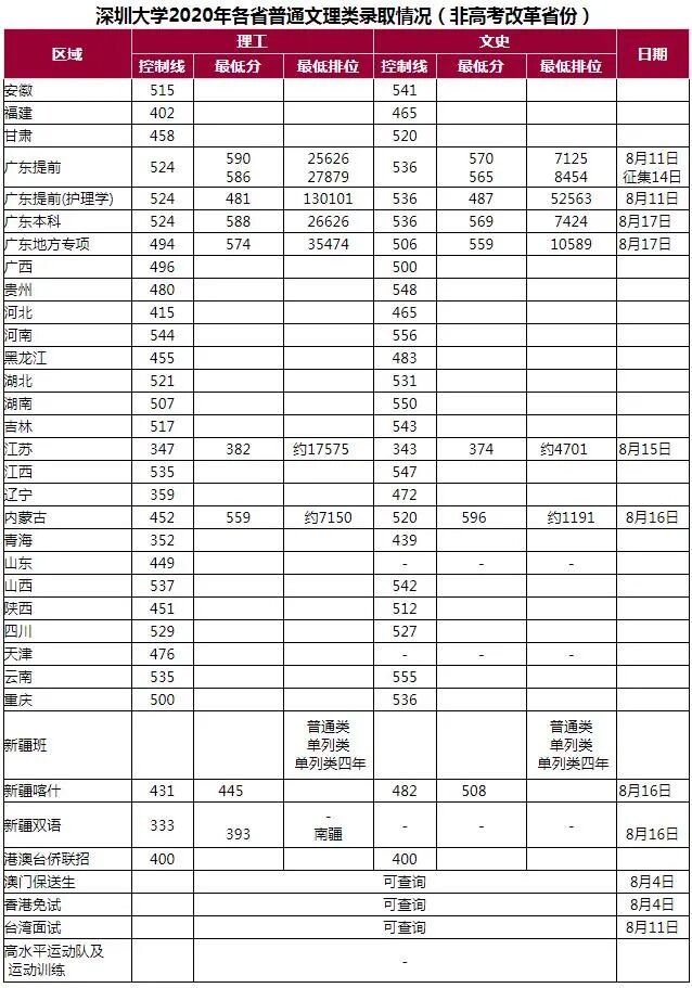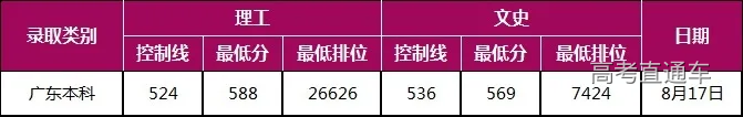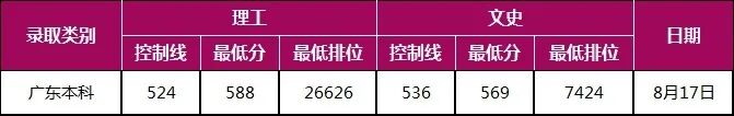 各科类控制线为相应省市自治区科类一本线(合并批次的省份为第一段、高分投档线或本科线等),最低分为录取分数,外省最低排位为各省一分一段表公布的相应分数对应位次,按投档分(含政策性加分)统计;