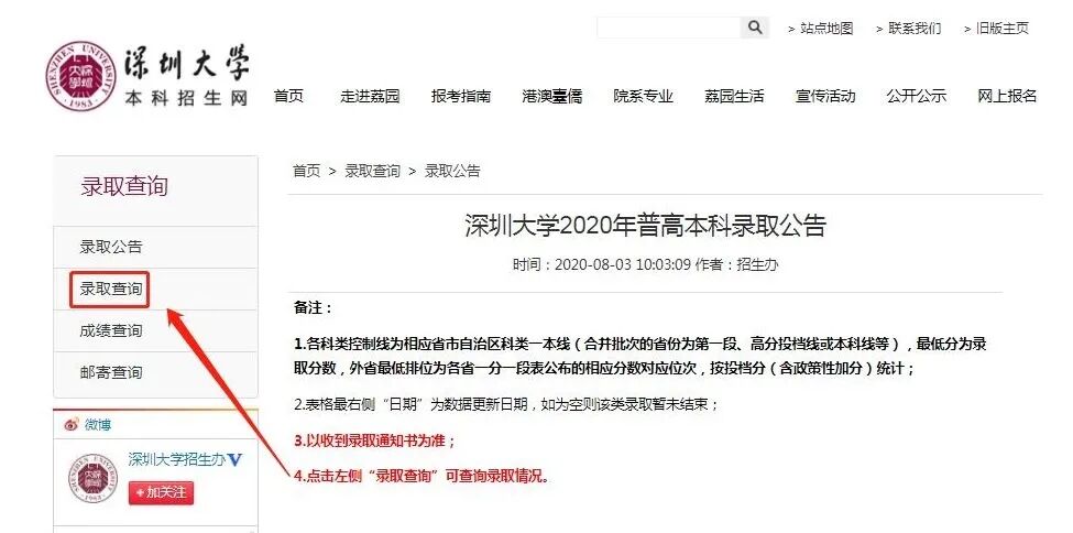 查询方式1:点击文末“阅读原文”进入我校本科招生网,点击网页左侧“录取查询”可查询录取情况。