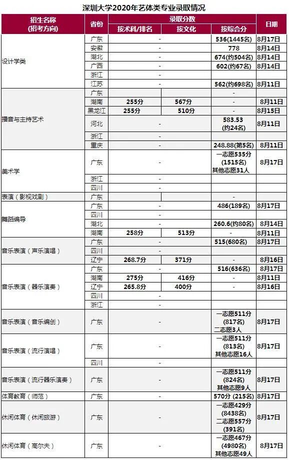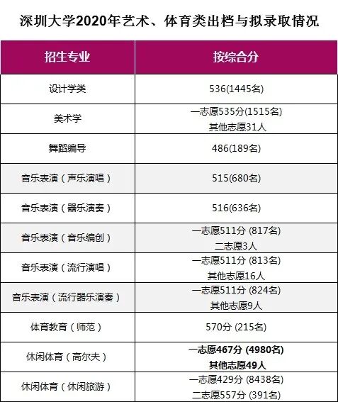 目前,除艺术(校考)尚未投档、休闲体育(高尔夫)拟征集2人外,其余艺体专业均已完成拟录取。