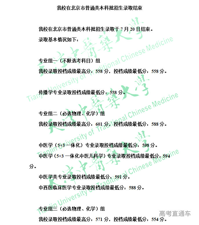 天津中医药大学2024年在北京市普通类本科批招生录取结束