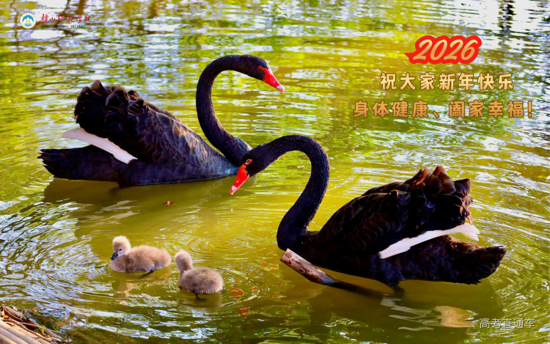 这一年, 我们追“信仰之光”,党建引领更加有力 我们以高质量党建引领高质量发展,深学笃行中央八项规定及其实施细则精神,以优良作风凝聚人心、激发干劲。我们迎来了天安门广场国旗,再添省级党建“双创”培育单位,教工党支部培育顺利通过省级验收;专项监督和系统整治强化正风肃纪,干事创业的政治生态更加清明。 粤东三校党建论坛智慧激荡,“智慧党建”项目启动建设,党建研究专项课题星火成炬;“思政第一课”赓续红色韩师根脉,井冈山革命传统教育基地淬炼师者初心。“育人报国,舍我其谁”的理想信念,已深植于每一位韩师人的心田。 这一年, 我们追“智慧之光”,创新动能更加强劲 我们勇攀科研高峰,首次获批中央引导地方科技发展资金项目;国家自科、社科基金与教育部人文社科项目捷报频传;省教育科学规划课题及省重点领域专项成绩喜人。 既有科研团队问鼎《Small》,也有科研团队登陆《德国应用化学》,还有教师连续三年入选全球顶尖科学家榜单;2个省级科研平台、1个创新团队获批建设;人工智能学院、人工智能研究院应时而生。“综时代之赋能”,沉潜问学,锐意创新,韩师声音愈发嘹亮。 这一年, 我们追“育人之光”,成才赛道更加宽广 我们主动回应时代之需,获得国家级一流本科课程3门,新增3个本科专业,省级示范性产业学院再添新丁,3个专业通过教育部师范类专业第二级认证。 教育教学硕果累累:获省高等教育优秀教学成果奖近十项;两部教材荣获首届广东省优秀教材奖;7个微专业入选教育部“双千”计划;实验学校集团获评省首批优质教育集团。 教师闪耀全国混合式教学设计大赛、省青教赛,两位老师荣获“南粤优秀教师”,获授省级美育名师工作室、青教赛名师创新工作室,学生评选出“我最喜爱的老师”;学子于全国、全省学术、科技、技能、文化、体育等赛场摘金夺银,2025届毕业生初次去向落实率在全省本科院校中名列前茅;英歌舞队惊艳央视,二十四节令鼓敲响第十五届全国运动会开幕式。 “黄旭华创新班”“饶宗颐国学班”“韩愈卓师班”相继开班,拔尖创新人才培养再开新局。“响臻多士,蓄蕴伟奇”,每一份耕耘都在韩园热土开花结果。 这一年, 我们追“担当之光”,服务答卷更加厚实 我们纵深推进“双百行动”,助力县域发展,举办乡村振兴成果展,工作案例多次获评省级优秀;我们开展全方位全口径融入式帮扶潮州教育,成立韩山师范学院基础教育集团,高质量服务基础教育,纵向帮扶“三所学校”和县中质量提升。 援疆、援藏支教团接力出征,年轻学子把韩师的教育使命书写在雪域高原;78支“百千万工程”突击队活跃在乡野田间,相关案例获省级荣誉。 我们举办粤东基础教育改革论坛,助力粤东西北教师全员轮训;共建全国首个地理标志司法保护中心;800名韩师青年志愿者闪耀国际潮团年会。“助地方之经济”,我们把论文写在大地上,把服务刻进时代里。 这一年, 我们追“开放之光”,合作画卷更加绚烂 我们开放的大门越开越大,合作的朋友圈越来越广:马来西亚、泰国情深谊长,西班牙、意大利远渡重洋,英国、新加坡学术共鸣,全年对外交流合作高潮迭起。 潮菜出海,首次在泰国共建“潮菜烹饪工匠基地”,中泰潮商微专业顺利开班;第十五届潮学国际研讨会、第二届国际潮青运动会相继举办,诚邀海外潮人归来看海。 “十五五”规划调研步履不停,对标先进、协同育人,做大合作办学新空间。“畅海外之交流,奋智能之新骑”,韩师声音在更广阔的天地回荡。 这一年, 我们追“多彩之光”,家园底蕴更加温润 我们的教育事业蒸蒸日上,东区获潮州市政府划拨教育用地200余亩,“粤东职教城”启动谋划;教育基金成立,办学资源再拓展;南三区和东区的教学实验楼崭新启用,成为师生打卡新地标;甲子文化广场落成,“韩师铭”砥砺初心。 我们获批硕士学位授予单位,首届研究生招生启动;学生考研录取率再创新高。我们深情缅怀、学习黄旭华院士,黄旭华功勋馆开馆,成为浸润式红色传承新空间;《红色韩师》《丁寿康家书集》让“爱国爱乡爱校的家国情怀”火炬代代相传。 韩山书院复办十周年,传统书院与现代大学教育交相辉映。“夫韩师者,山仰韩姓,校以山传”,这里的每一寸土地都书声琅琅,每一缕空气都氤氲青春。 旧岁已展千重锦,新年再进百尺竿 2026年的钟声即将敲响,这是出发的号角、奋进的鼓点。“今也气象宏开,鹏图必至”,新的一年,我们将更加紧密地团结在以习近平同志为核心的党中央周围,深刻领悟“两个确立”的决定性意义,坚决做到“两个维护”,认真落实省委“1310”具体部署,高效推动学校“十五五”规划开局之年各项工作,高质量落实立德树人根本任务,坚持教育、科技、人才一体化推进,锚定学校“12321”发展思路和“三步走”发展战略,推动学校内涵与外延发展再跃新阶。 岁聿云暮,一元复始 入驻东丽湖一年有余的两只黑天鹅于年末首次孵出一窝小天鹅,碧波之上,羽翼初展,给即将到来的新年献上祥瑞吉兆,也预示韩师在新的一年必将展翅高飞、再谱华章。 大道如砥,行者无疆 亲爱的同学们、老师们、校友们、朋友们,让我们满怀信心与期待,携手并肩,迎着2026年的第一缕阳光,追光而行,共赴新程! 祝愿伟大的祖国繁荣昌盛、人民幸福安康! 祝愿大家新年快乐、身体健康、阖家
