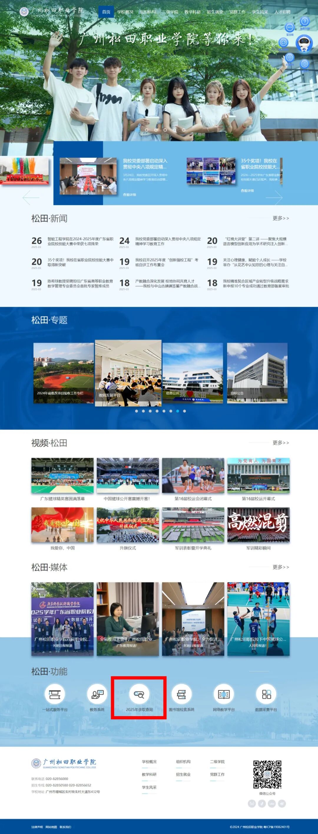 我校目前已在“广州松田职业学院微信公众号”“广州松田职业学院官网”两大官方平台开设了“录取查询”功能。查询系统预计在3月29日开启,考生可根据自己的姓名、身份证登录以上平台查询录取专业情况。