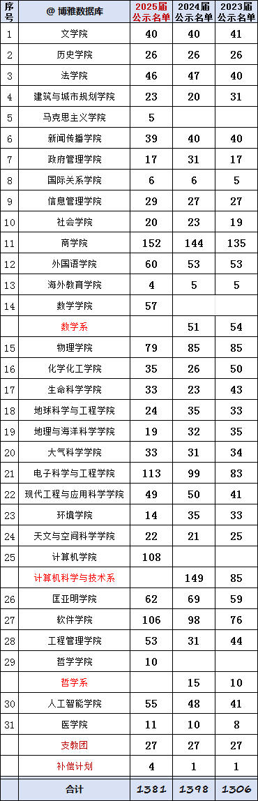 保研北京大学53人。 保研北京大学医学部1人。 保研上海交大55人。 保研北京师范大学2人。 保研中科大15人。