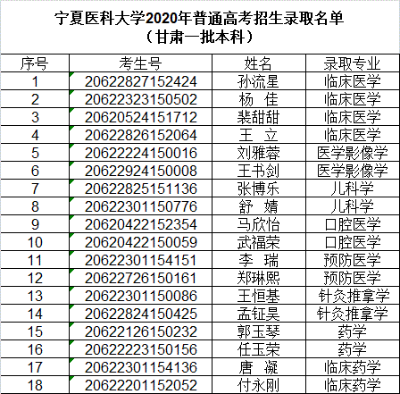 我校2020年甘肃本科批录取工作已结束,共录取18人。录取最高分555,最低分534,平均分541.26。