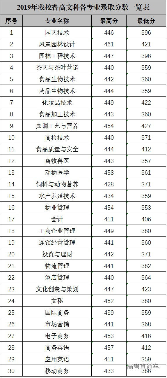 广东科贸职业学院2019年各省各专业录取分数线