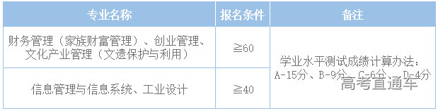 2.普通高中学业水平考试成绩均为合格(含)以上(以报名截止日期前已取得的成绩为准),且符合报考我校专业相应学业水平测试成绩最低要求(详见下表);