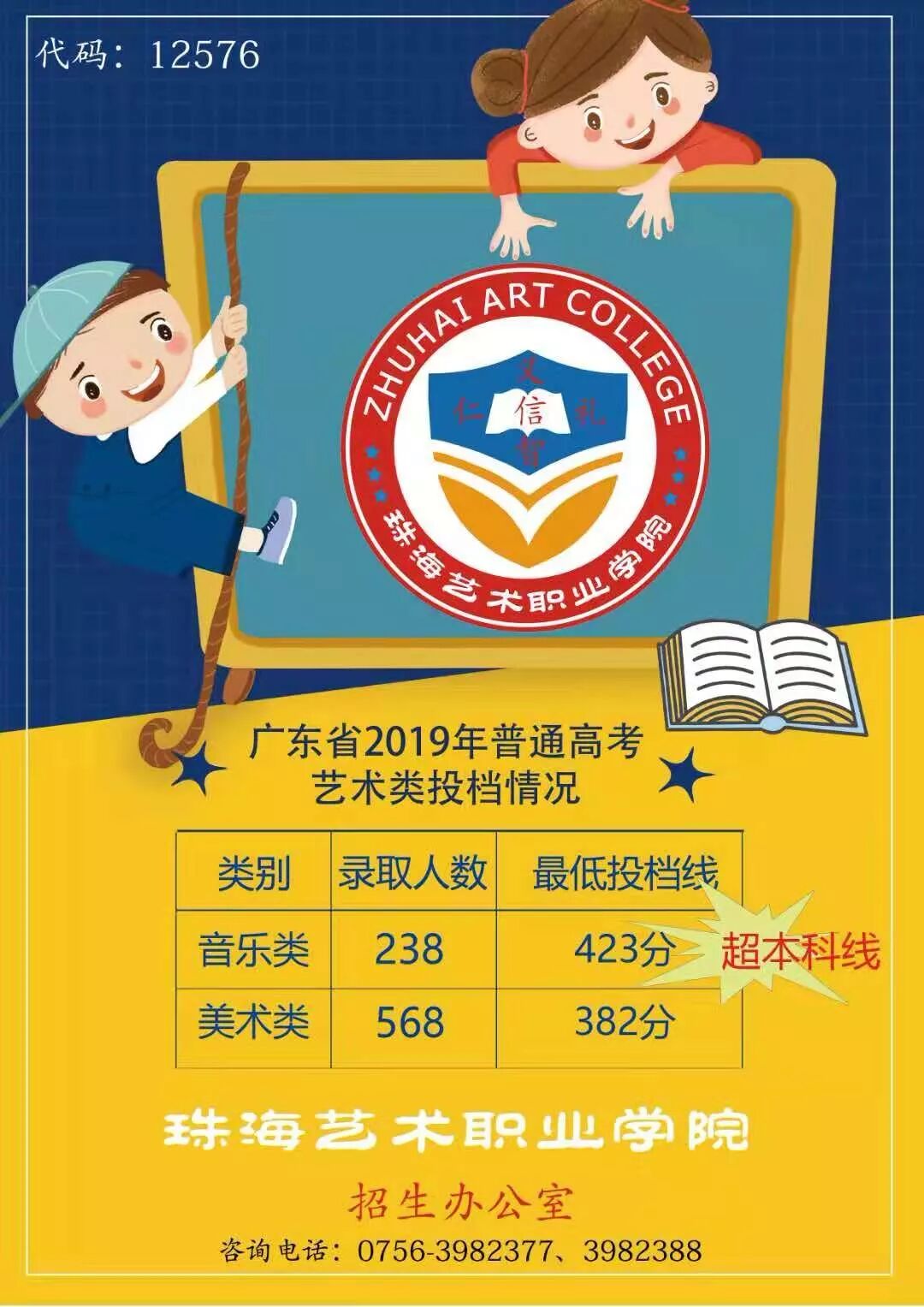 珠海艺术职业学院2019年普通高考广东省音乐类、美术类最低投档线公布!
