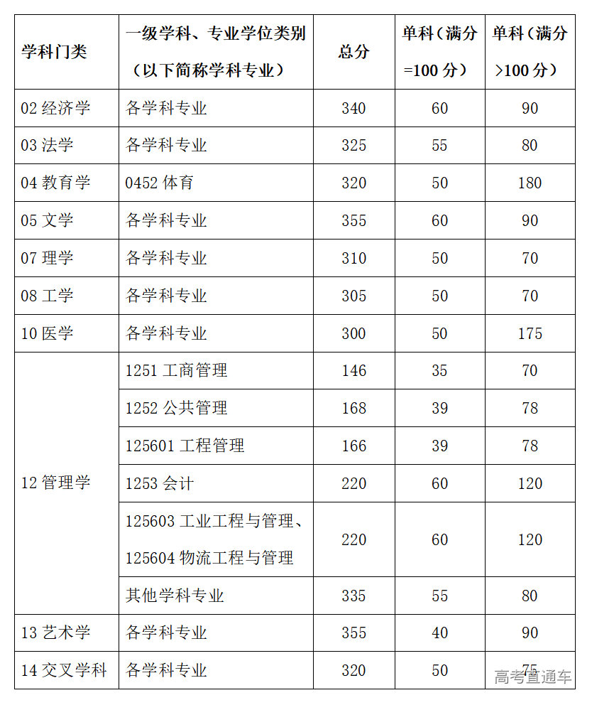 三、报考“退役大学生士兵”计划的考生,初试成绩总分、单科不低于所报考专业A类考生国家线,按照考生总分与报考学科基本要求(见上表)的差值排序(初试满分300分制的专业折算成500分制),由高到低通知复试(“差值”相同时,服役时间长的考生优先,其次按照统考英语、数学、思想政治理论成绩排序)。