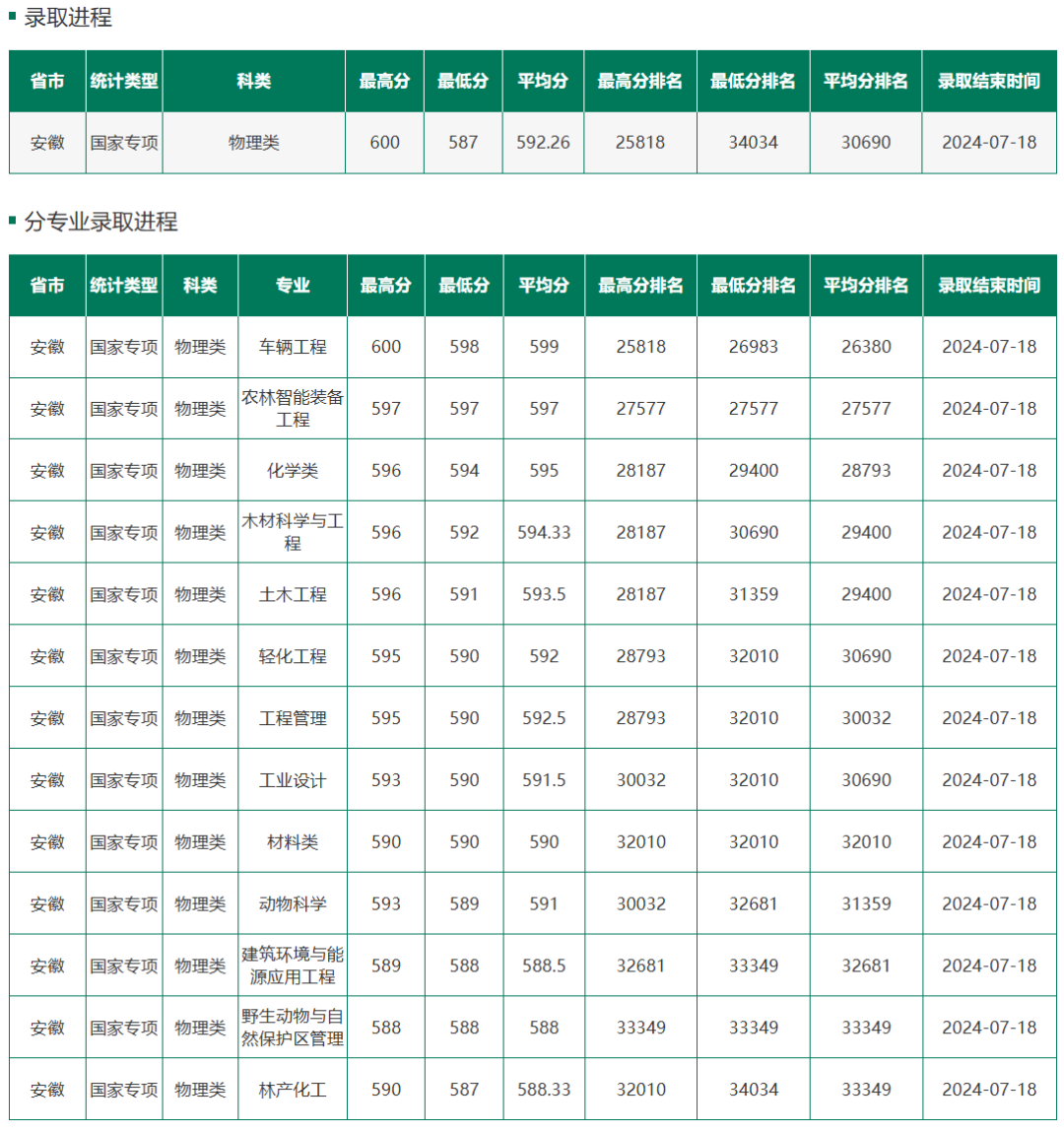 东北林业大学【安徽省】2024年国家专项录取结果公布