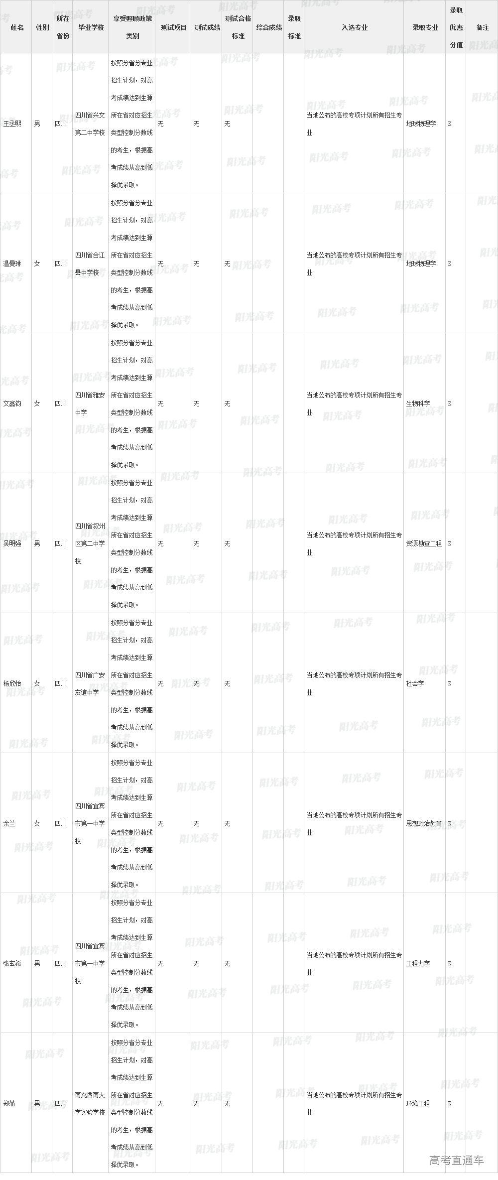 ④按分省计划择优录取的用E标注;