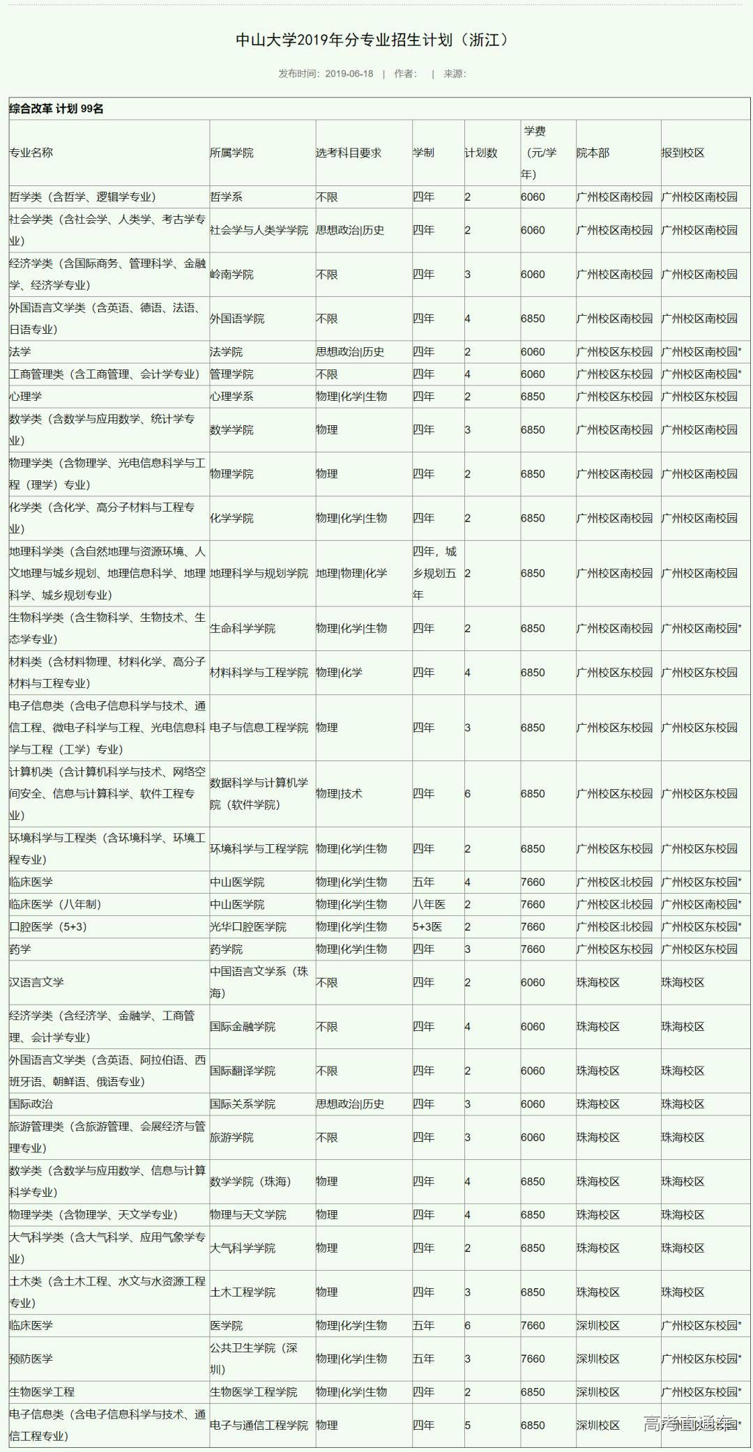 安徽 北京 重庆 福建 甘肃 广东 广西 贵州 海南 河北 河南 黑龙江 湖北 湖南 吉林 江苏 江西 辽宁 内蒙古 宁夏 青海 山东 山西 陕西 上海 四川 天津 西藏 新疆 云南 浙江 注1:表中来源计划仅供参考,考生填报高考志愿须参照各省(区、市)招生部门公布的报考专业目录为准。 注2:报到校区一栏*表示本专业学生将根据教学安排,后一阶段迁至另一校区(园)就读,具体迁移情况以学校当年公布为准。 注3:护理学专业以提前批或单独代码方式录取的,入校后不得转入其他专业学习。 注4:民族班在投档成绩不低于我校在该省(区、市)普通本科批次提档分数线以下40分内且符合生源省份有关规定的少数民族考生中择优录取。 注5:学费以物价批复为准。其中,数据科学与计算机学院(软件学院)的计算机类(含计算机科学与技术、网络空间安全、信息与计算科学、软件工程专业)在专业分流之前,其学费标准为6850元/学年;专业分流之后,软件工程专业收费标准为8000元/学年,其它专业为6850元/学年。收费标准如有变化,则以新公布为准。