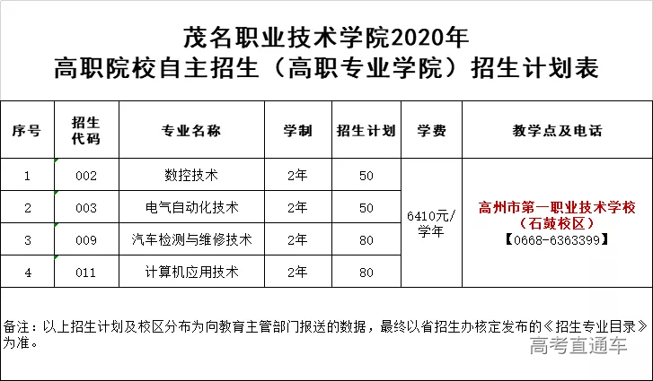 根据《关于做好广东省2020年高等职业院校面向中职生自主招生录取工作的通知》(点击查看)的文件精神,我校2020年继续面向中职毕业生开展自主招生试点工作。2020年,我院与高州市第一职业技术学校(石鼓校区)协同开展高职专业学院人才培养,共开设4个专业,招生260人。