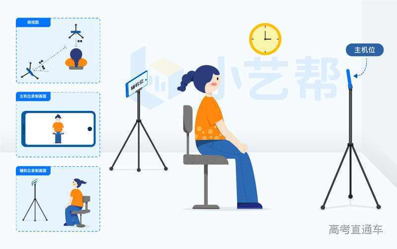 (1)非才艺展示环节:主机保证肩部及以上入镜、辅机全身出镜,避免考试过程中调整主辅机机位。