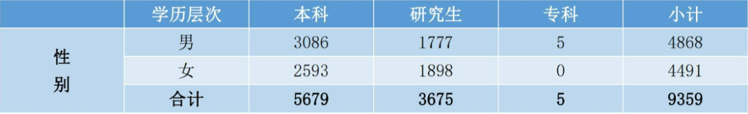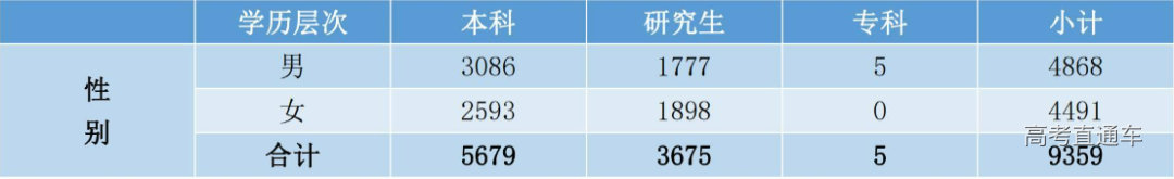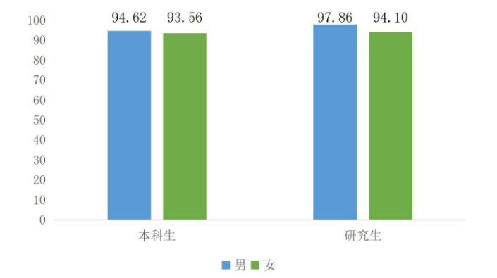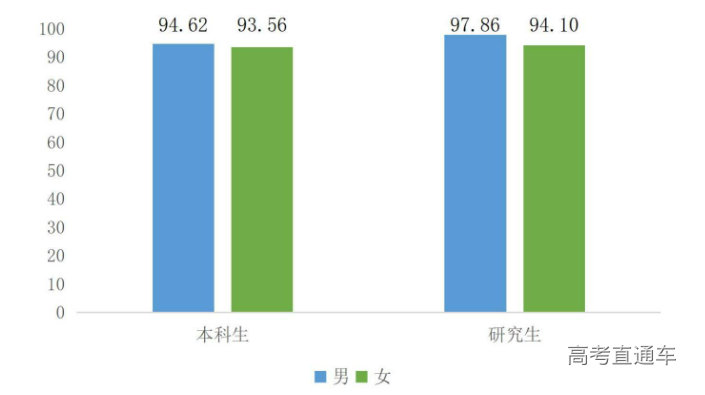 2023届毕业生从学历与性别交叉分布来看,本科毕业生男女性别比为1.19:1,研究生毕业生男女性别比为0.94:1。